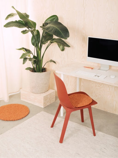 With myfelt's comfortable seat pads, chairs and seating can be upgraded in the blink of an eye. Both flat and in an attractive felt ball design, they are a practical addition to classic office chairs and transform them into design objects. Because, as with all other myfelt products, design and workmanship meet the highest standards. Even a set of chairs in the study or a small meeting lounge can be embellished in a practical way with the soft seat pads. In addition to the standard sizes, the felt ball seat covers can also be adjusted to any individual size.