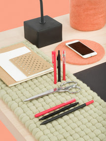 A beautiful and tidy workplace promotes concentration. Because work is often more effective and more pleasant in an orderly environment. The felt baskets and coasters from myfelt are used as small organisers. Their robust yet soft structure lends the study a special atmosphere. The felt baskets in different sizes and colours not only create order on the desk, but also cut a good figure on sideboards, shelves and side tables. Smartphones, headphones for the next video meeting, pens and other small work materials are kept handy and stylish in the study with the beautiful coasters.