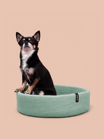 Small and large dogs feel comfortable and safe in the dog basket, which is hand-made from pure new wool. With a diameter of 40 cm or 60 cm, in three colors and six different colored inlays, a variety of color combinations are possible. The firmly felted material offers the highest level of dimensional stability and thus guarantees years of enjoyment.