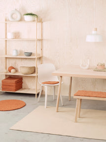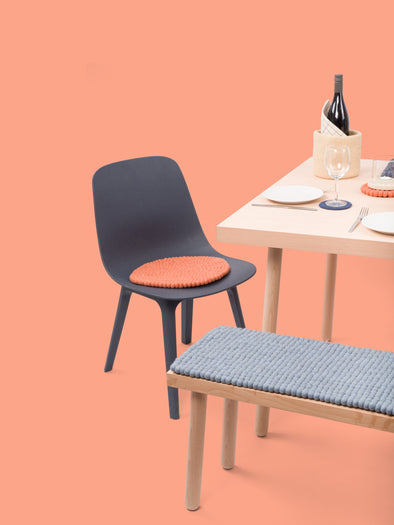 Anyone who sits for a long time likes to sit comfortably. The seat cushions made of felt from myfelt ensure all-round comfortable sitting. Available in different sizes, they bring colour accents to the dining room as seat and bench cushions. All myfelt seat and bench cushions are highly water and dirt repellent. Thanks to the natural material properties of the high-quality wool, the felt cushions also store warmth and make sitting not only comfortable but also pleasant in the long term.