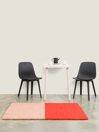 The flat felted and handmade rugs from myfelt are particularly suitable for the dining room at home. The pure virgin wool material is easy to care for and durable. This means that even heavy dining tables and all kinds of chairs can be placed on them and bring harmony and aesthetics into the room as an additional interior accessory.