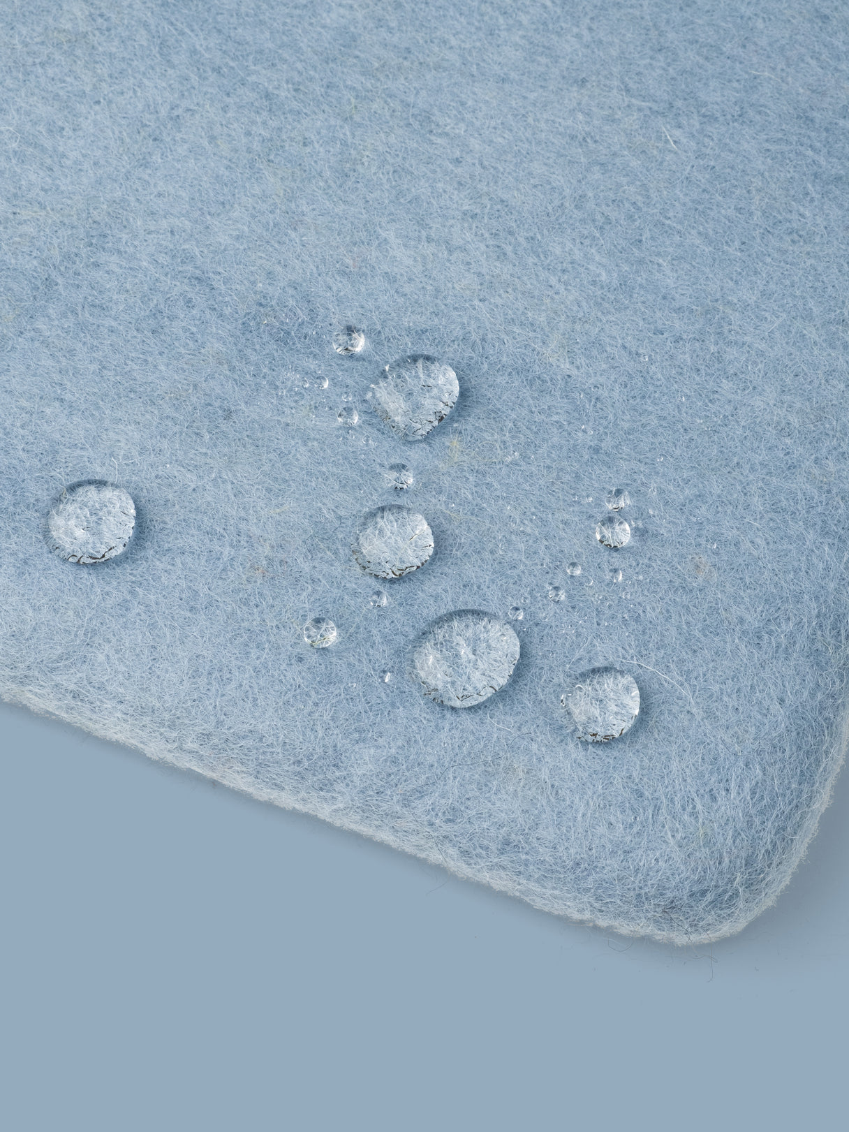 Wool felt has water-repellent properties thanks to the natural wool fat content. This wool grease, also known as lanolin, gives the felt a protective barrier that repels dirt and moisture and increases the longevity of the material. Wool felt has a positive effect on the moisture balance in the room because it has the ability to absorb moisture from the air and release it again when necessary. This natural regulation contributes to the creation of a pleasant indoor climate and helps to compensate for fluctuations in air humidity. Therefore, all myfelt products such as carpets, accessories and felt baskets can also be used in the bathroom without any problems.
