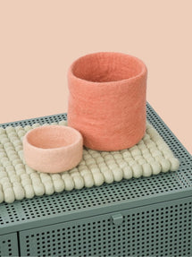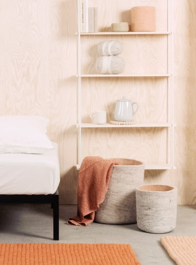 Whether in the large version for storing your bedspread or with a smaller volume as a proven organiser on the bedside table for glasses and smartphones or on the chest of drawers, the myfelt felt baskets come into their own. Their soft feel and gentle colours bring warmth and tranquillity to the bedroom. All myfelt felt baskets are made exclusively by hand using traditional methods. Their high quality is reflected in many years of durability and clearly oriented functionality in a timeless design.