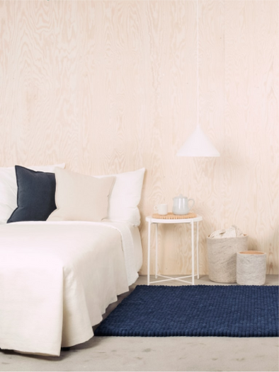 In the bedroom, myfelt felt ball rugs are particularly striking as a cleverly applied interior piece. An extensive range of colours - from subtle pastel shades to inspiring solid colours and colour patterns to natural-looking white, grey and beige tones, allow for endless possibilites when combining with your own bedroom furnishings.