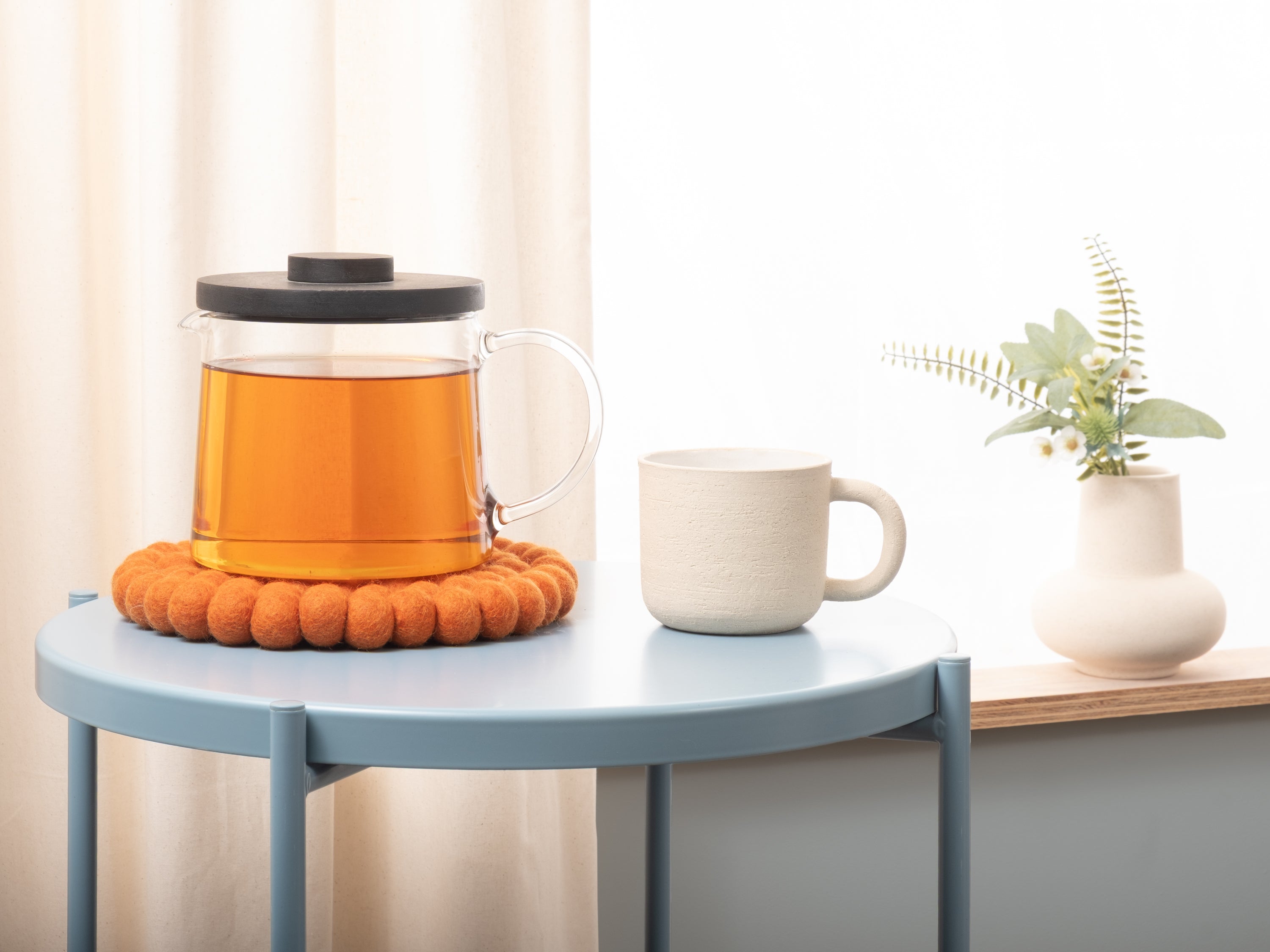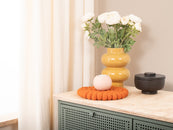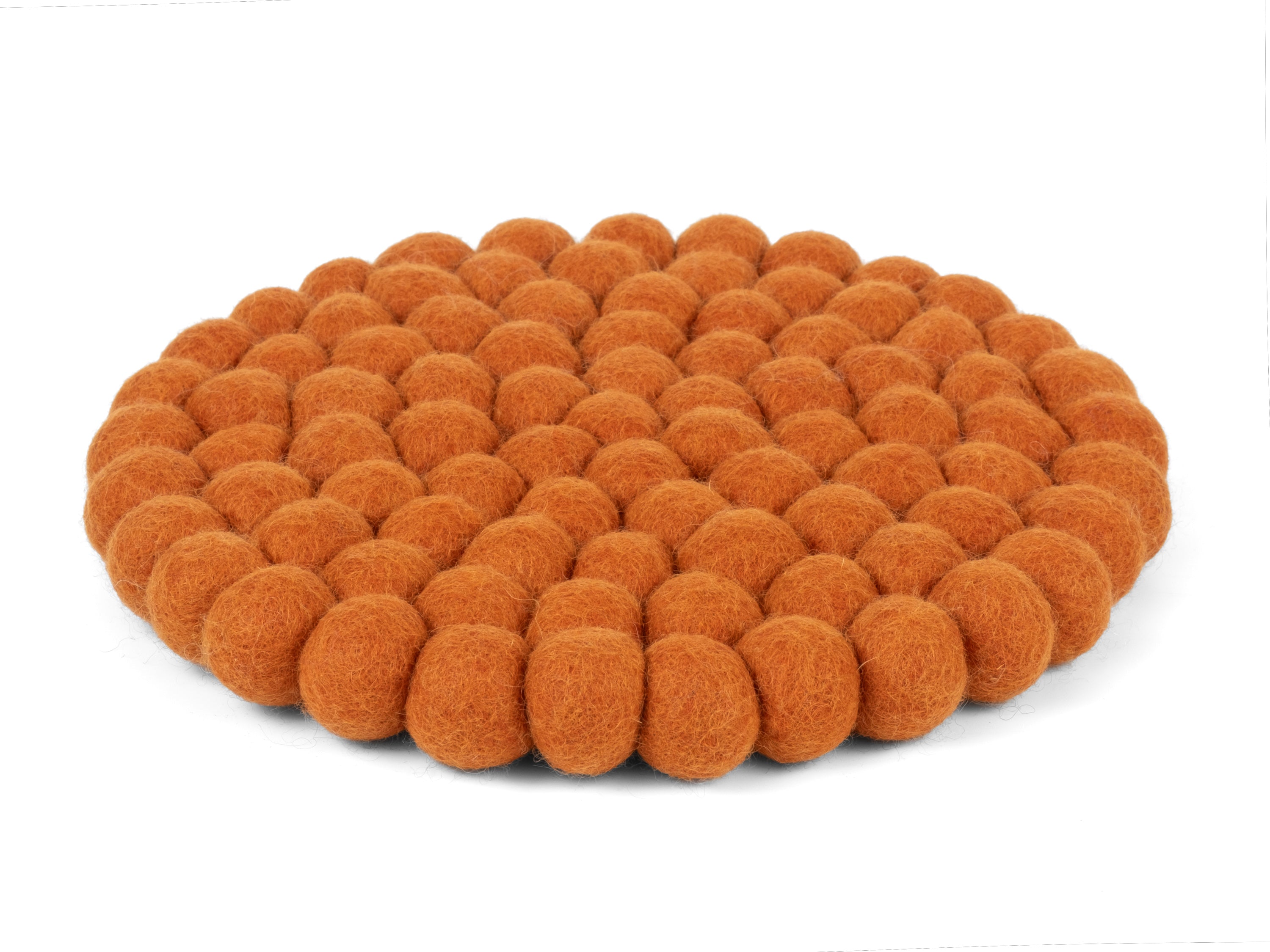 Round, orange trivet made of pure new wool | myfelt