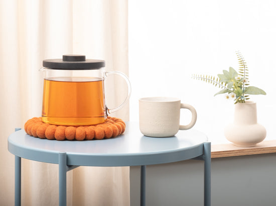The trivet Afra in the colour orange combines functionality with charming design. Robust, heat-resistant, water- and dirt-repellent, and reversible. Made from pure new wool, handcrafted in Nepal under fair conditions.