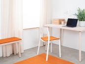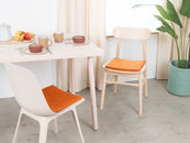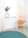 The orange-colored, flat seat pad Afra brings warmth and softness to your favorite chair. Made from pure new wool, handcrafted in Nepal and produced under fair conditions. myfelt seat pads are water- and dirt-repellent and can be used on both sides.