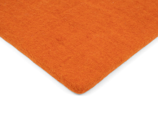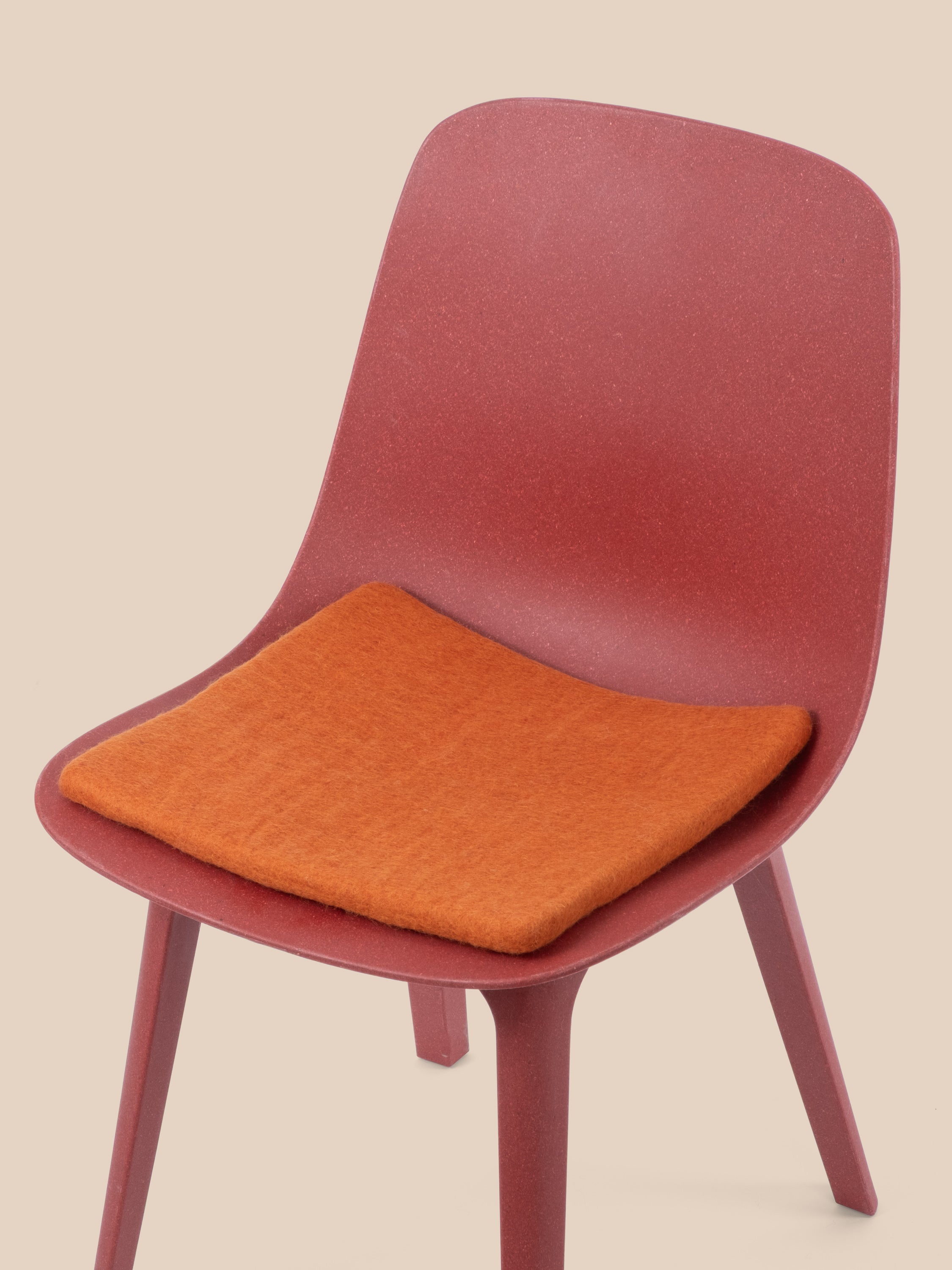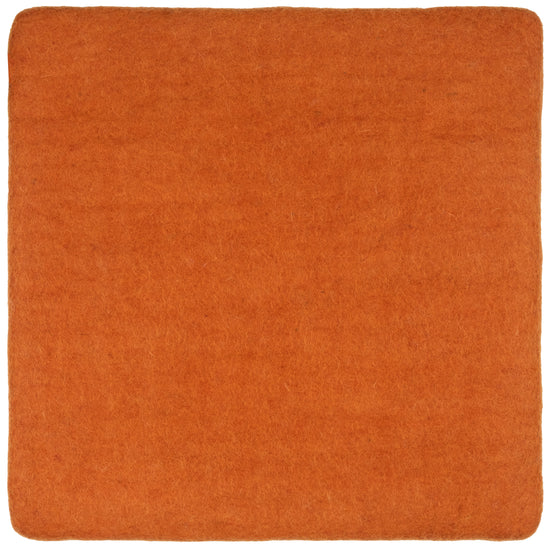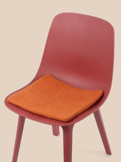 Square, orange-colored flat seat pad made of pure new wool.