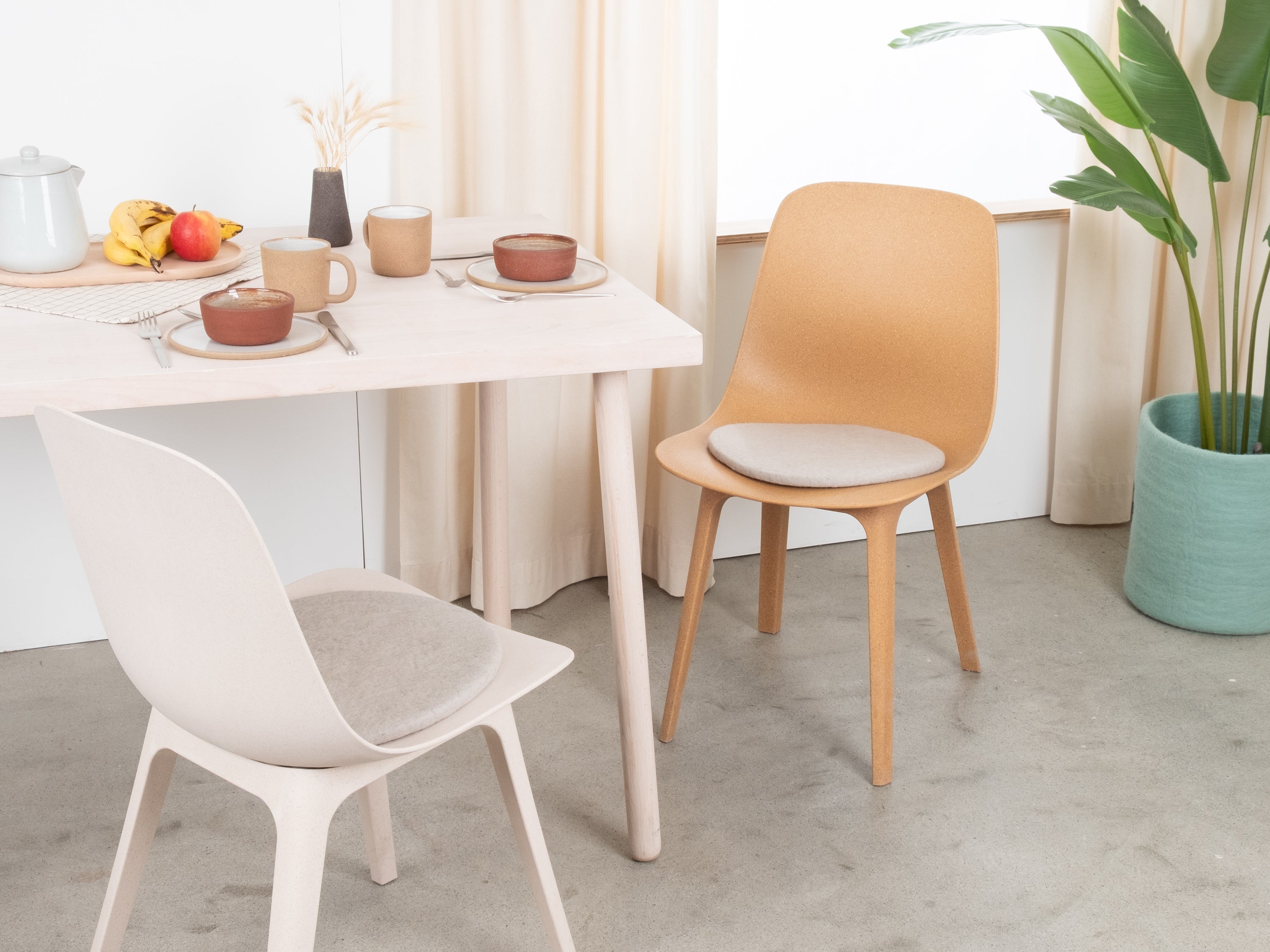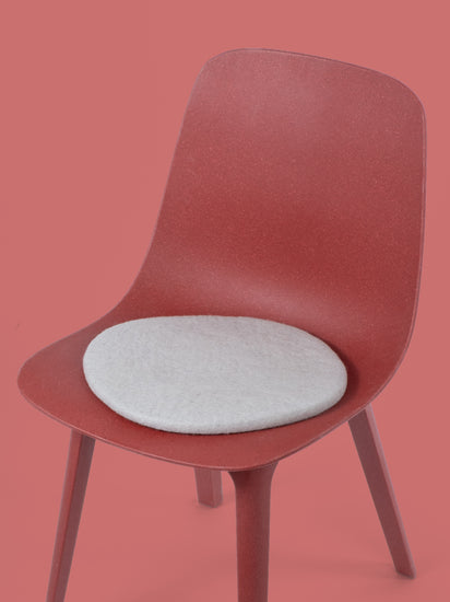 The light gray, flat seat pad Aven brings warmth and softness to your favorite chair. Made from pure new wool, handcrafted in Nepal and produced under fair conditions. myfelt seat pads are water- and dirt-repellent.