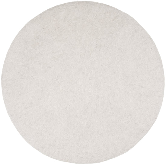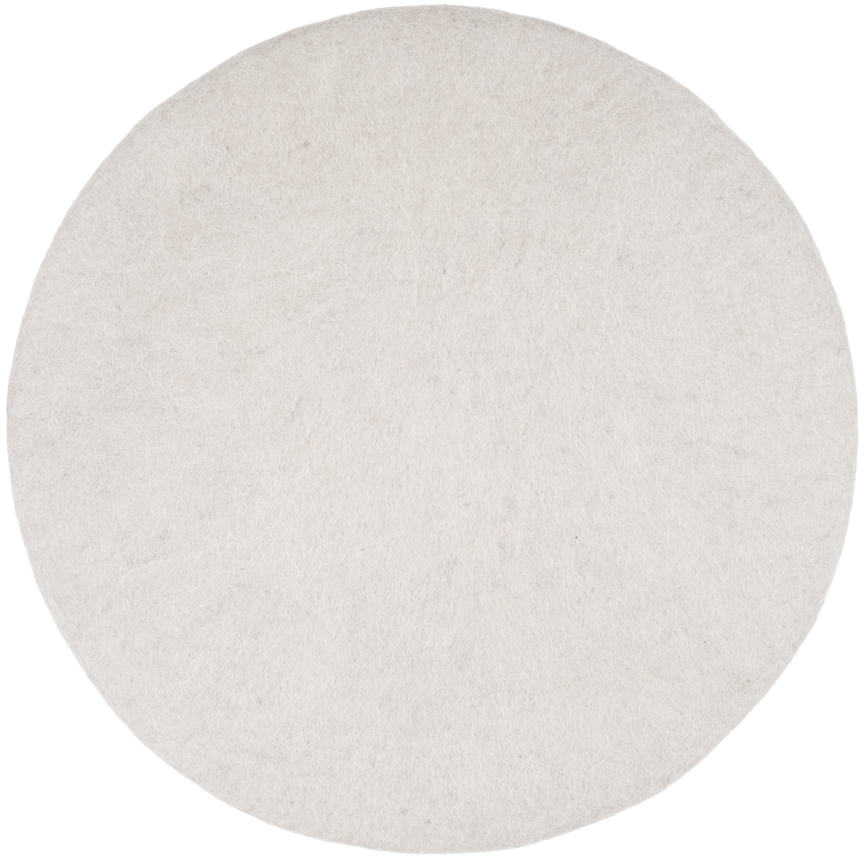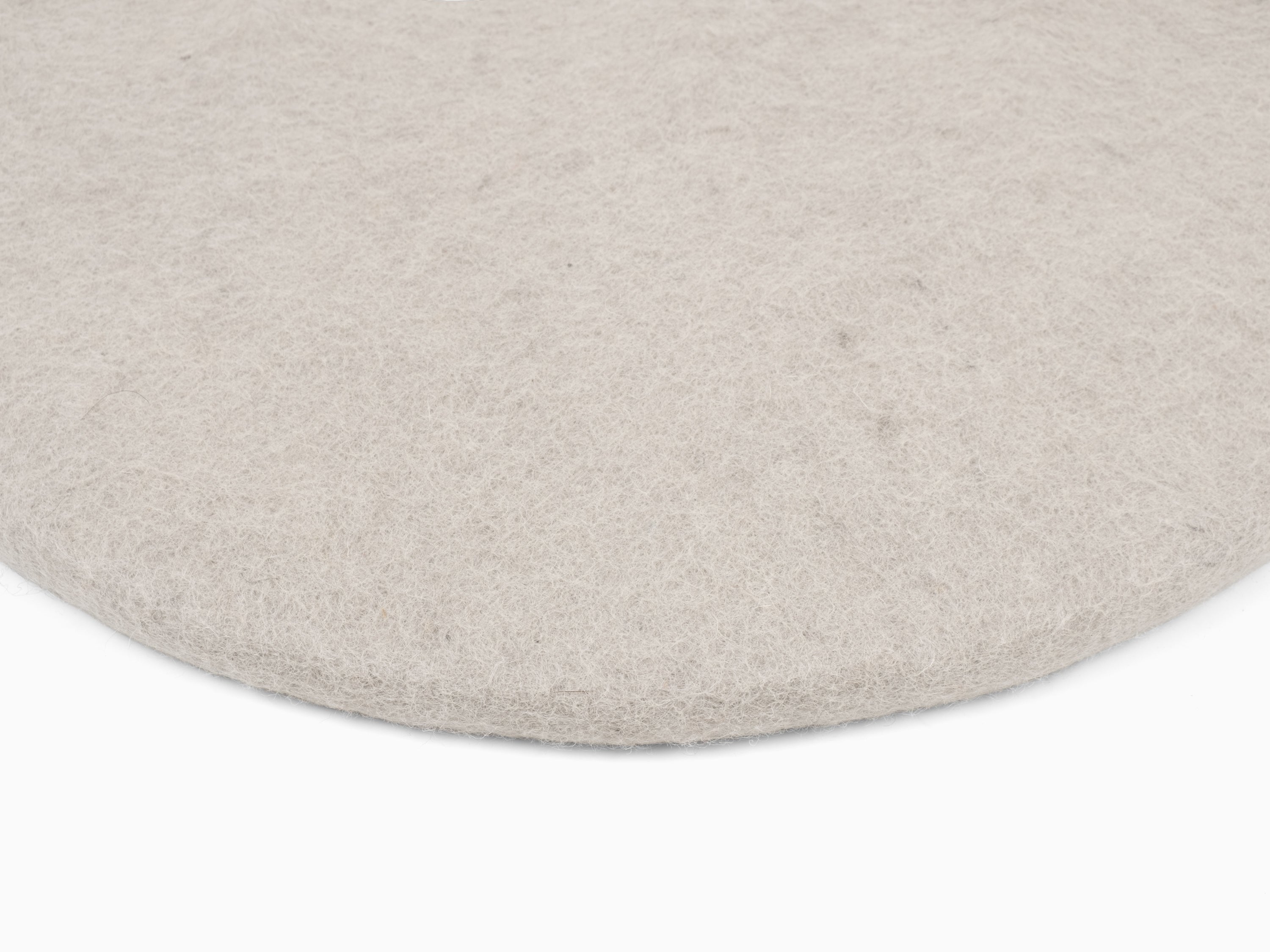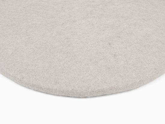 Round, light gray flat seat pad made of pure new wool.