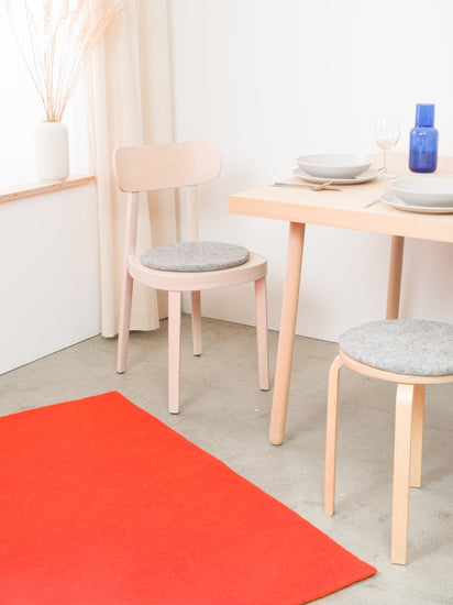 For the handmade, grey mottled Carl seat cover (36 cm, round), pure virgin wool is felted into a flat cushion. The pad not only creates a pleasant and comfortable sitting experience, but thanks to its classic design, also provides a timeless look for every favourite chair. myfelt seat pads are water- and dirt-repellent and can be used on both sides.