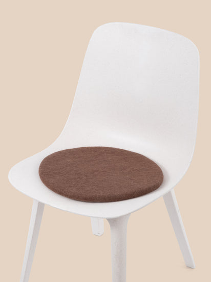 The brown, flat seat pad Egon brings warmth and softness to your favorite chair. Made from pure new wool, handcrafted in Nepal and produced under fair conditions. myfelt seat pads are water- and dirt-repellent and can be used on both sides.