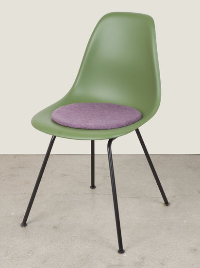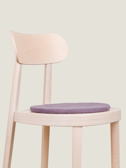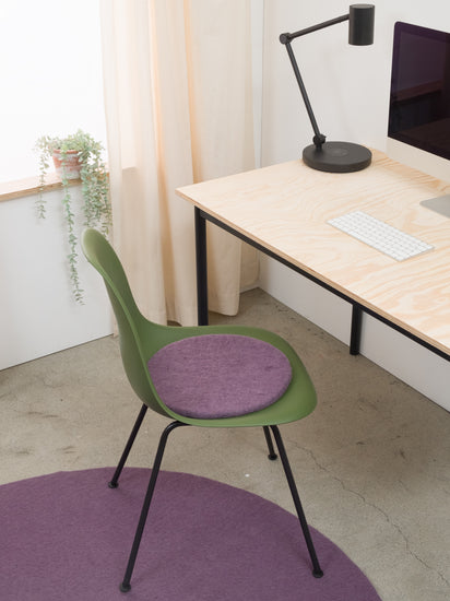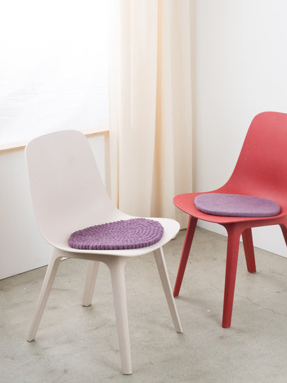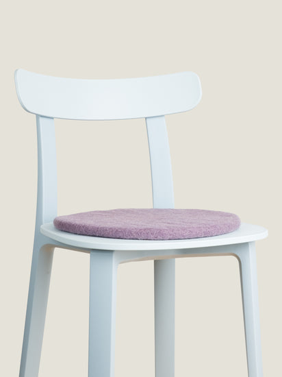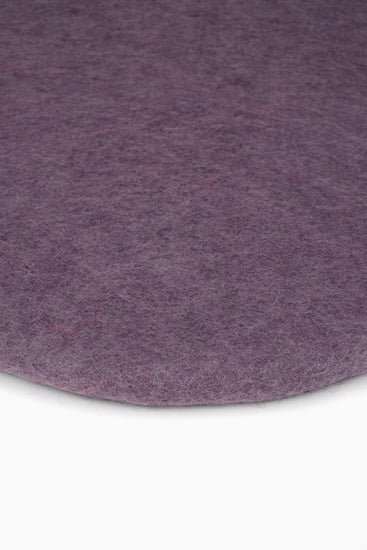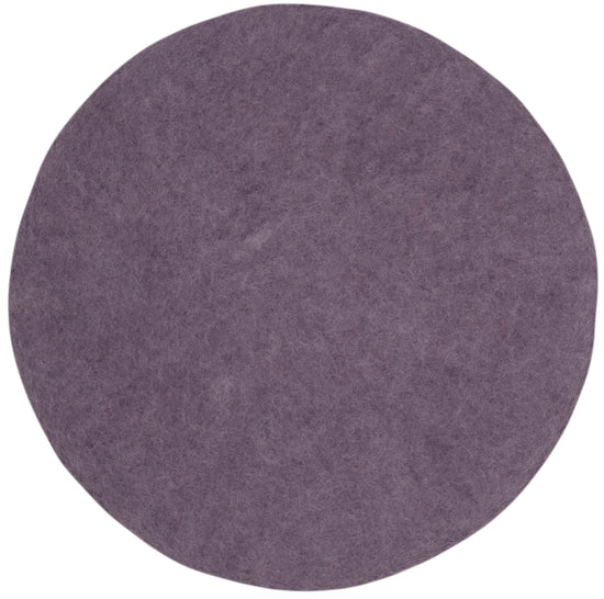 Round, purple flat felted seat pad made of pure new wool