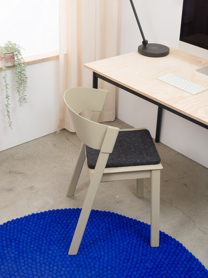 For the handmade, charcoal-coloured, mottled seat pad Hugo (36 x 36, square), pure virgin wool is felted into a flat cushion. The pad not only creates a pleasant and comfortable sitting experience, but its simple design also provides a particularly classic, timeless touch for every favourite chair. myfelt seat pads are water- and dirt-repellent and can be used on both sides.