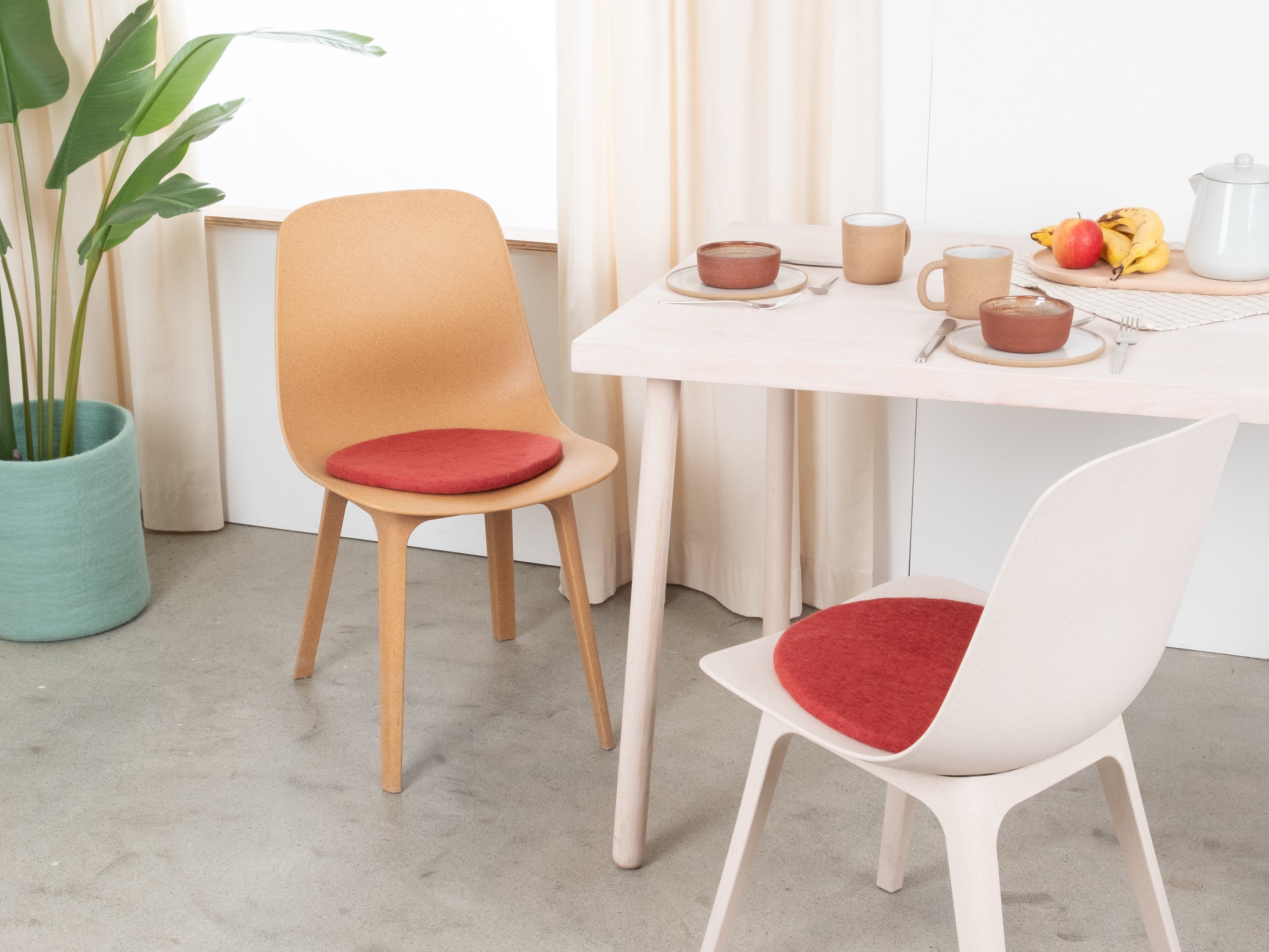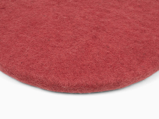 The wine red, flat seat pad Kaja brings warmth and softness to your favorite chair. Made from pure new wool, handcrafted in Nepal and produced under fair conditions. myfelt seat pads are water- and dirt-repellent and can be used on both sides.