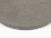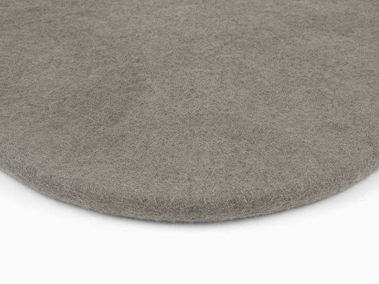 Round, gray flat seat pad made of pure new wool.
