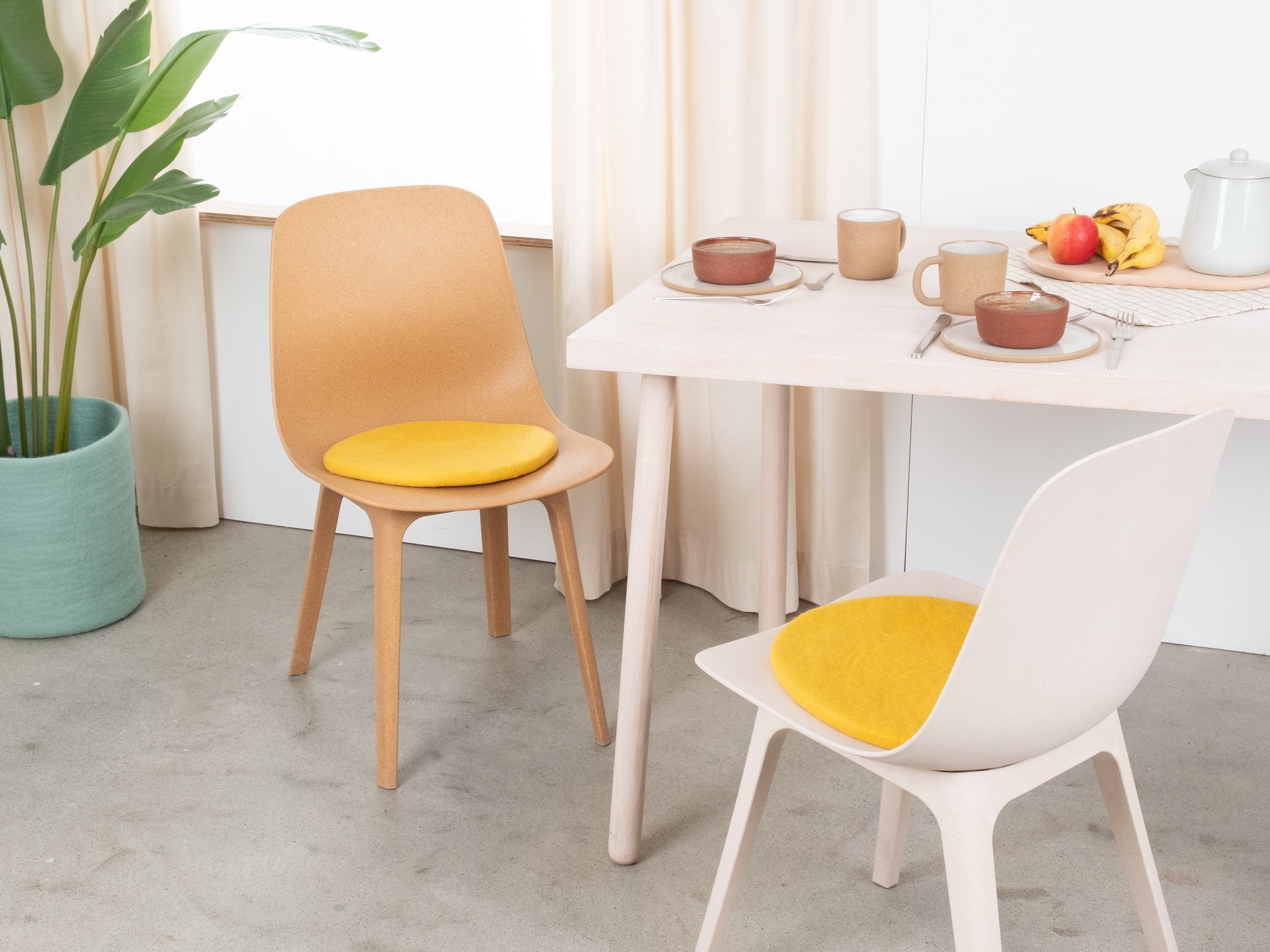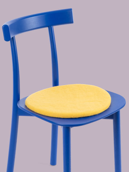 The yellow, flat seat pad Kira brings warmth and softness to your favorite chair. Made from pure new wool, handcrafted in Nepal and produced under fair conditions. myfelt seat pads are water- and dirt-repellent and can be used on both sides.