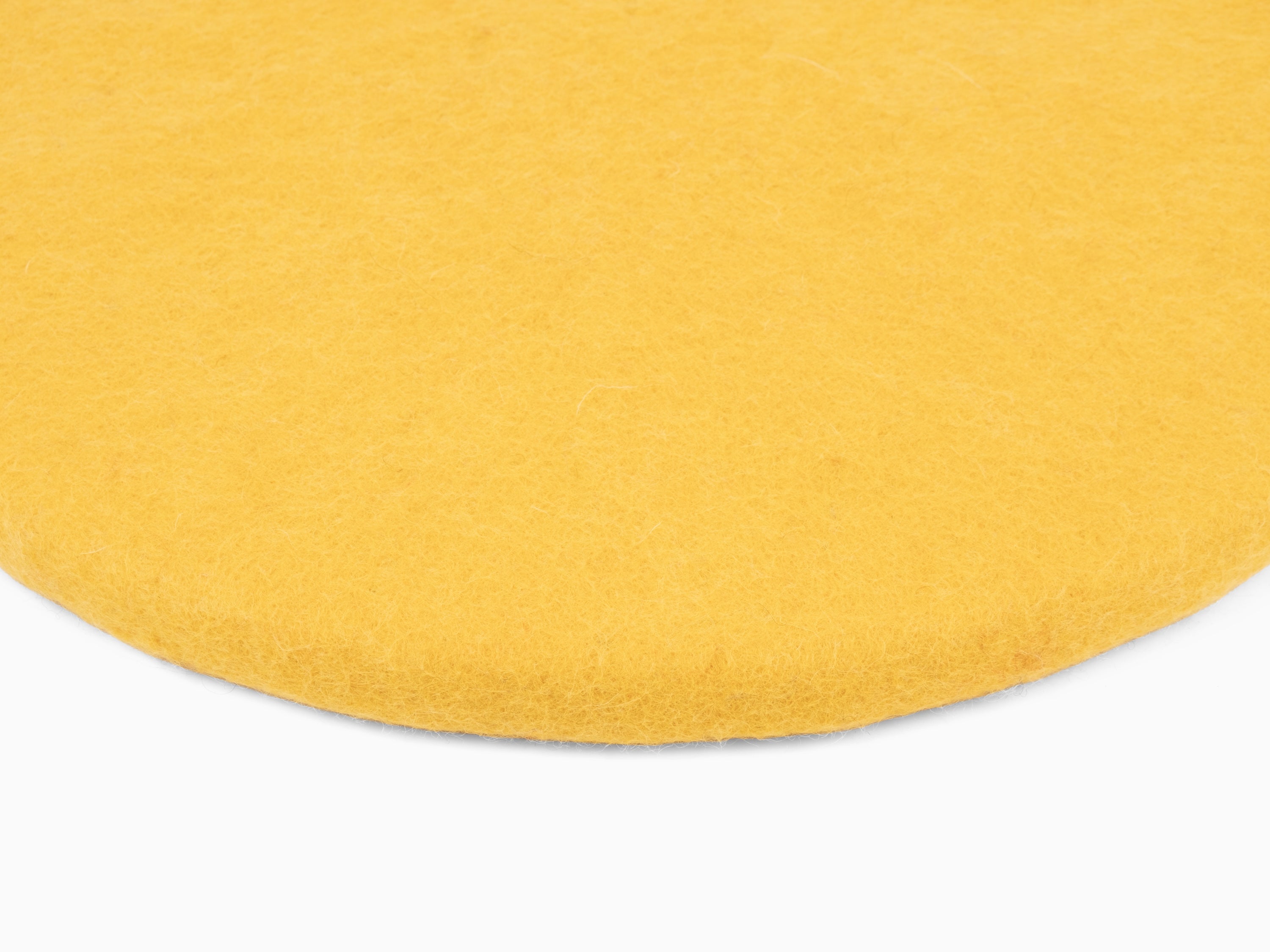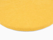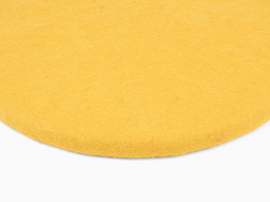 Round, yellow flat seat pad made of pure new wool.