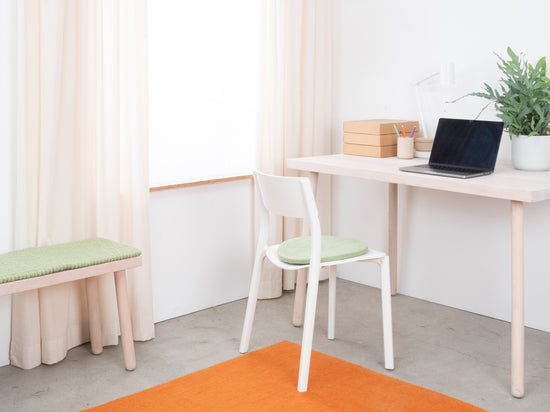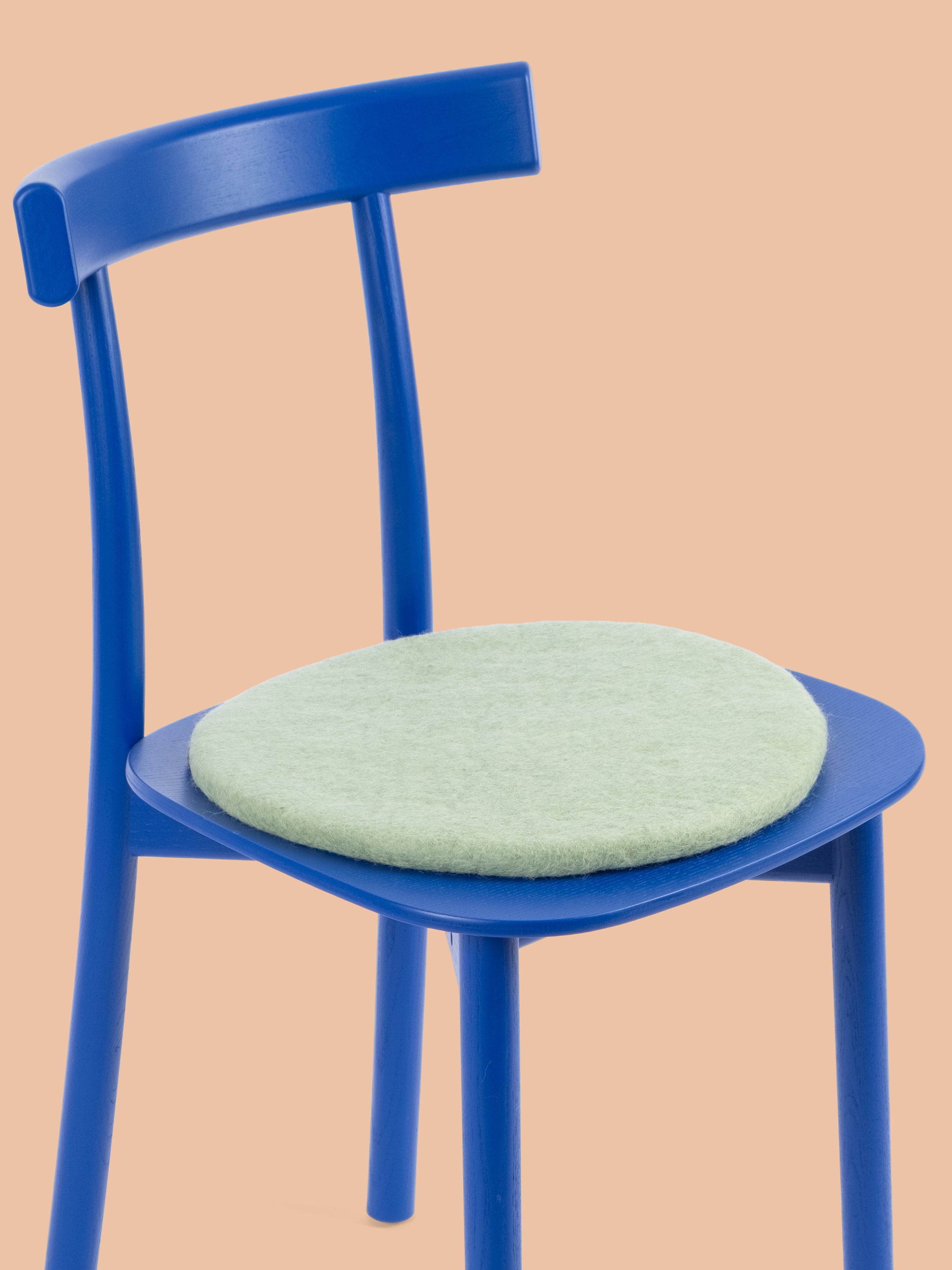 The light green, flat seat pad Lasse brings warmth and softness to your favorite chair. Made from pure new wool, handcrafted in Nepal and produced under fair conditions. myfelt seat pads are water- and dirt-repellent and can be used on both sides.