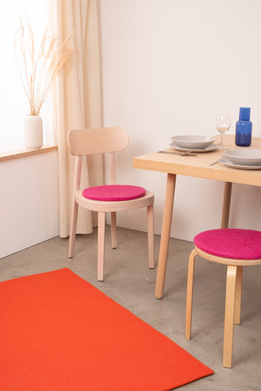 With the round, flat Lilli seat pad in pink, you can add charming color dynamics to your interior. Not only does it offer visual appeal, but also the practical durability and warmth of virgin wool, ideal for everyday use.