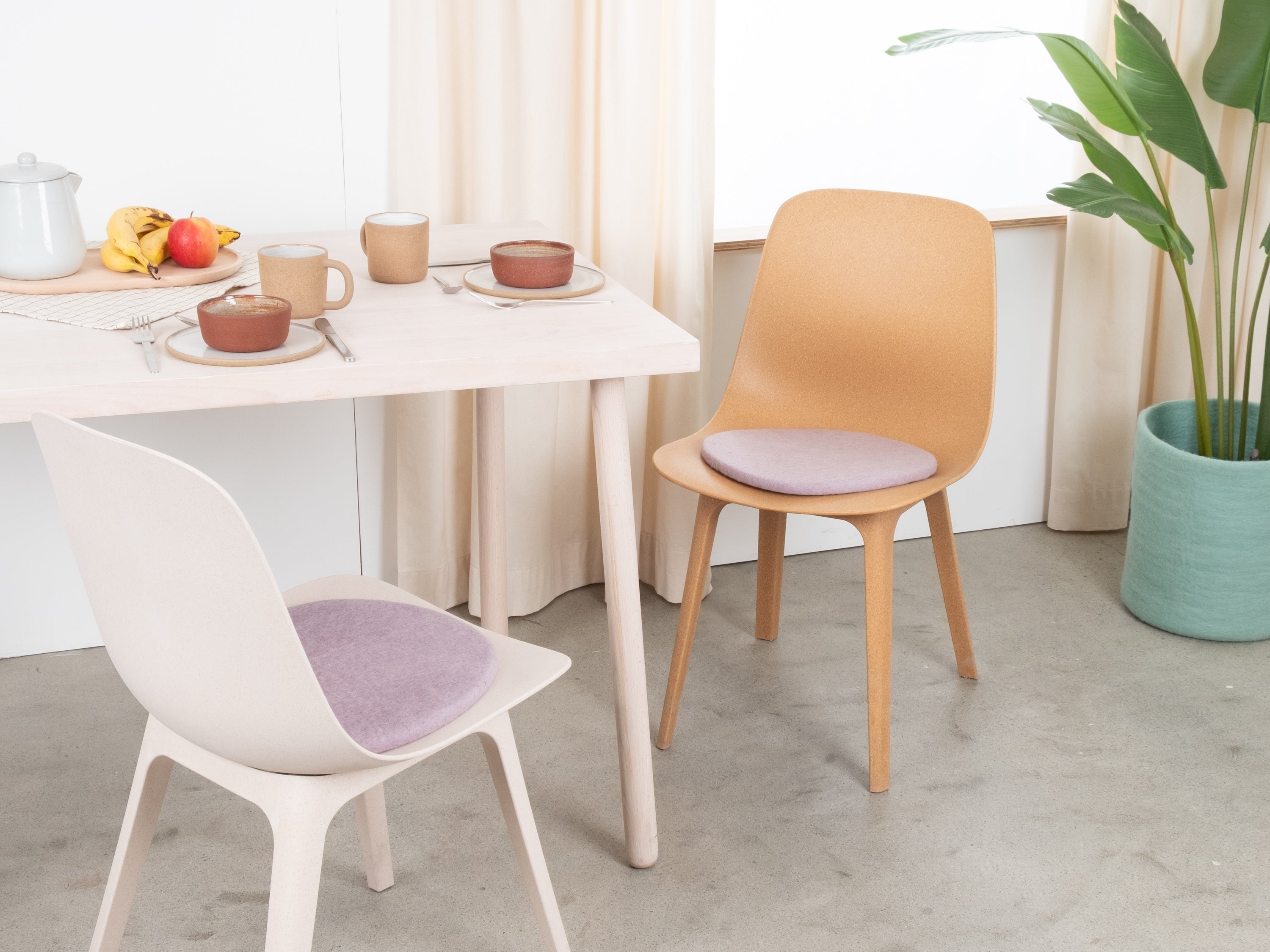 The light purple, flat seat pad Marla brings warmth and softness to your favorite chair. Made from pure new wool, handcrafted in Nepal and produced under fair conditions. myfelt seat pads are water- and dirt-repellent and can be used on both sides.