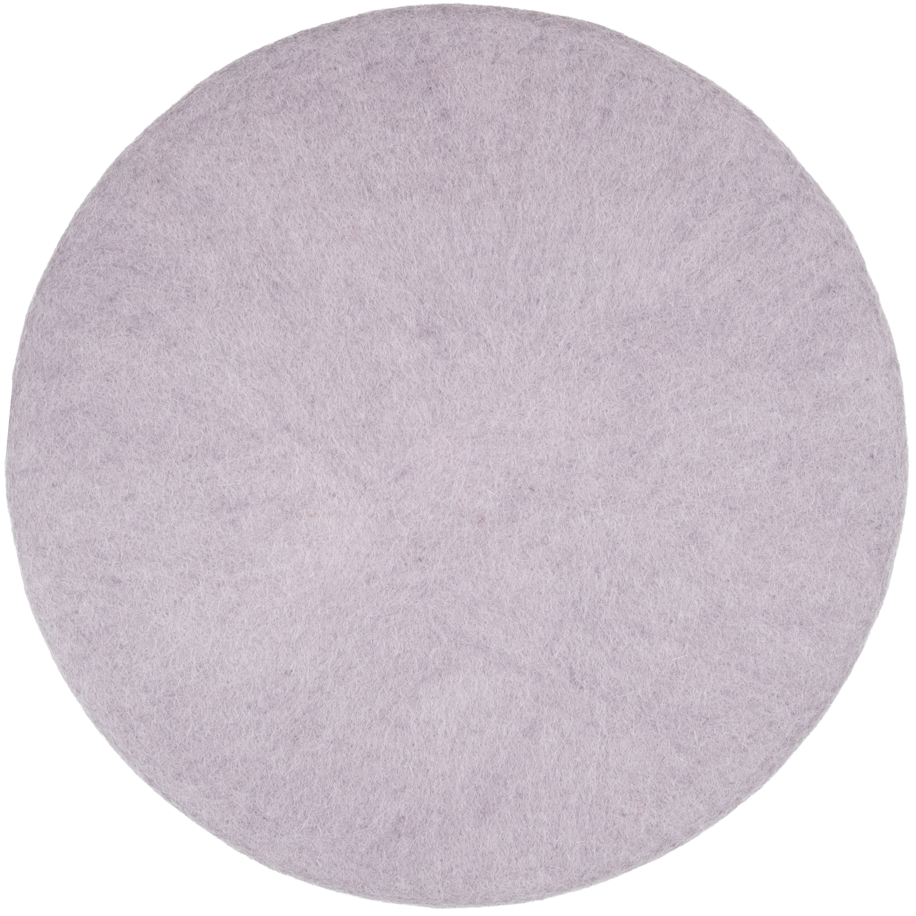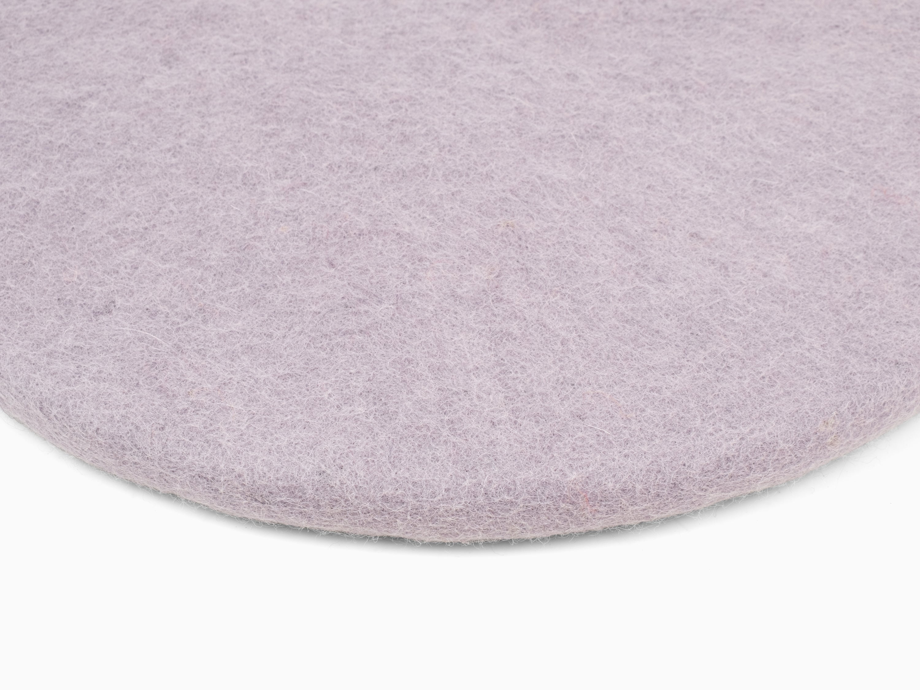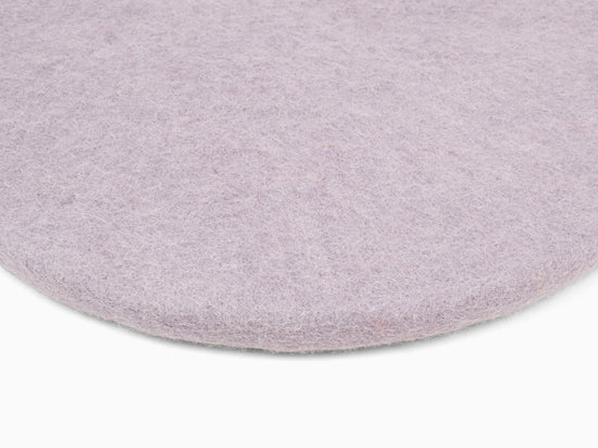 Round, light purple flat seat pad made of pure new wool.