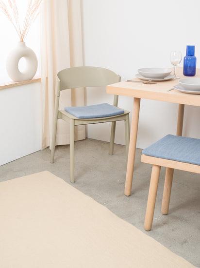 For the handmade, light blue seat cover Mia (36 x 36, square), pure virgin wool is felted to a flat cushion. The pad is not only pleasant and comfortable to sit on, but its classic design in discreet blue also creates an inviting look for your favourite chair. myfelt seat pads are water- and dirt-repellent and can be used on both sides.
