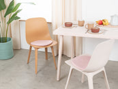 The soft pink, flat seat pad Mona brings warmth and softness to your favorite chair. Made from pure new wool, handcrafted in Nepal and produced under fair conditions. myfelt seat pads are water- and dirt-repellent and can be used on both sides.