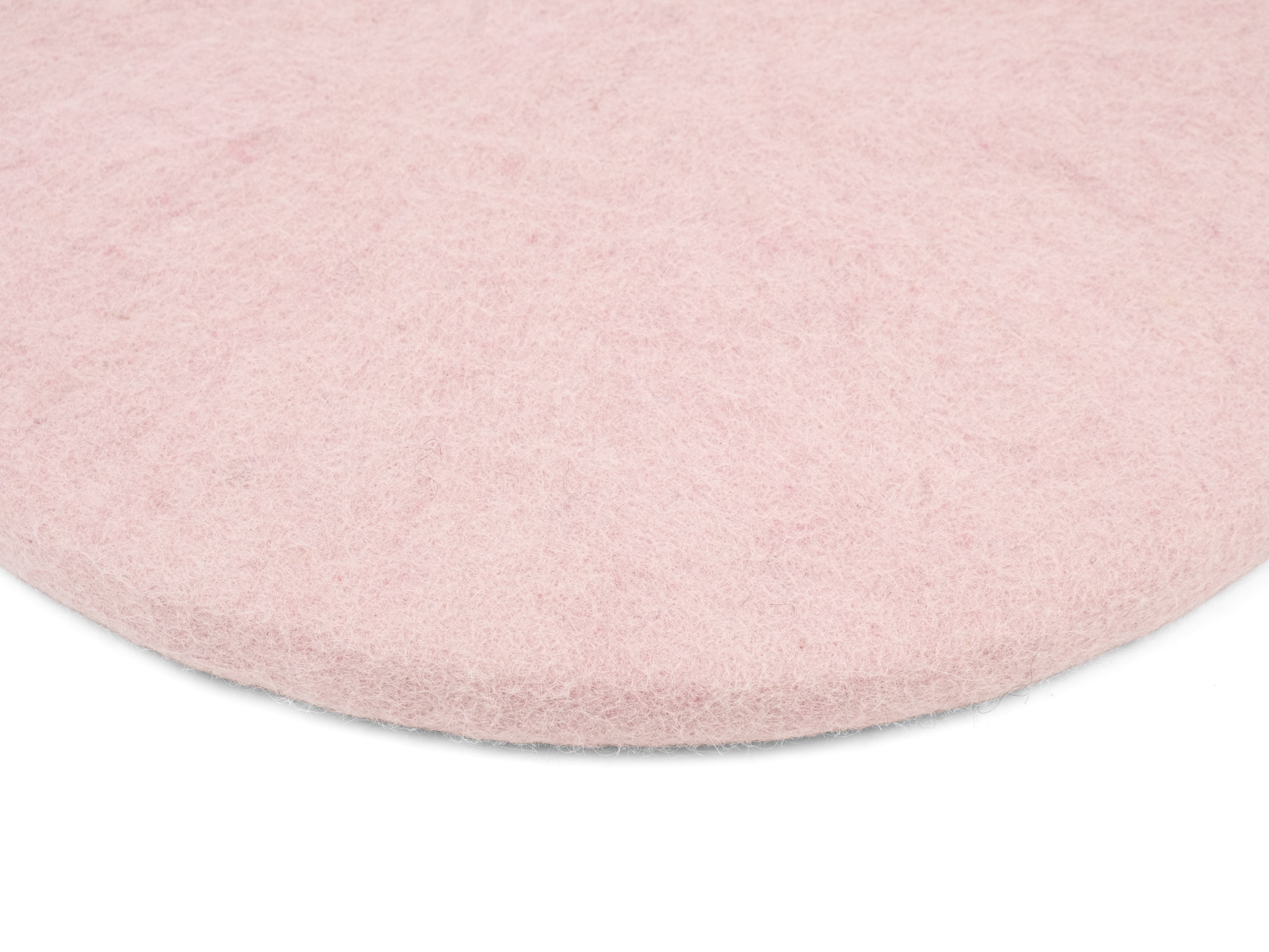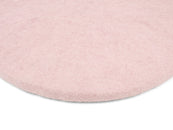 Round, soft pink flat seat pad made of pure new wool.