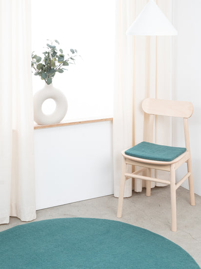 The petrol-colored, flat seat pad Noah brings warmth and softness to your favorite chair. Made from pure new wool, handcrafted in Nepal and produced under fair conditions. myfelt seat pads are water- and dirt-repellent and can be used on both sides.
