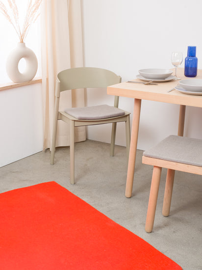 For the handmade, light grey seat pad Luis (36 x 36, square), pure virgin wool is felted to a flat cushion. The pad not only creates a pleasant and comfortable sitting experience, but its subtle colour in a simple grey ensures a balanced interior design and is a perfect match for your favourite chair. myfelt seat pads are water- and dirt-repellent and can be used on both sides.