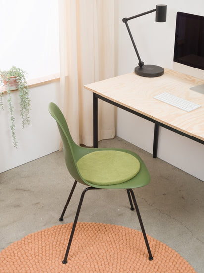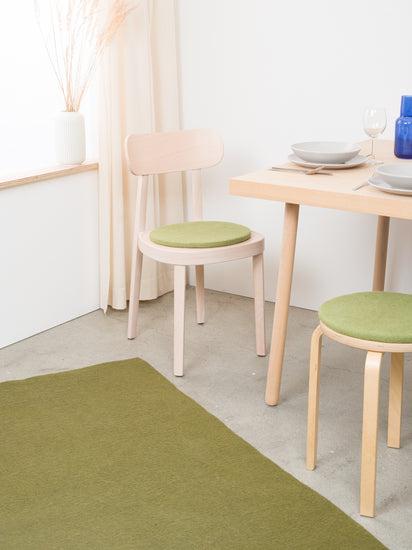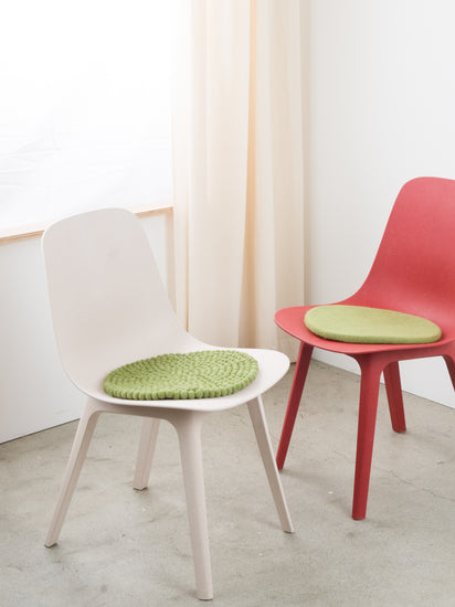 For the handmade, dark green seat pad Kaspar (36 cm, round) pure virgin wool is felted to a flat cushion. Not only does it create a pleasant and comfortable sitting experience, but its fresh and lively design also adds a natural touch to your favourite chair. myfelt seat cushions are water- and dirt-repellent and can be used on both sides.