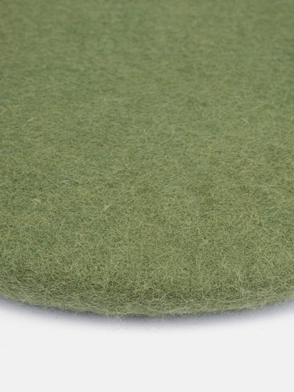 Dark green, round Flat Seat Pad made from Virgin Wool.