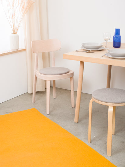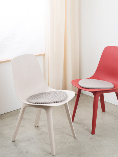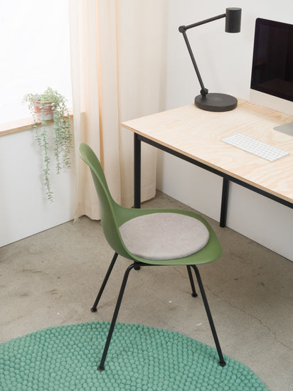For the handmade, light grey seat pad Luis (36 cm, round) pure virgin wool is felted to a flat cushion. The pad not only creates a pleasant and comfortable sitting experience, but its subtle colour in a simple grey ensures a balanced interior design and is a perfect match for your favourite chair. myfelt seat pads are water- and dirt-repellent and can be used on both sides.