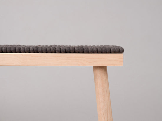 For the charcoal-colored bench pad Kuno individual felt balls made of pure virgin wool are sewn together by hand. The pad not only creates a pleasant and comfortable sitting experience, but its timeless design also ensures a stylish look for your favorite bench. myfelt bench pads are highly water- and dirt-repellent, can be used on both sides and are available in every custom size.