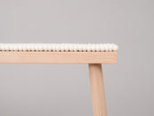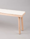 The white bench pad Linéa, made of untreated and pure New Zealand virgin wool, not only creates a pleasant and comfortable sitting feeling, but also provides a noble and luxurious charm due to its pure and honest design. myfelt bench pad Linéa is highly water- and dirt-repellent.