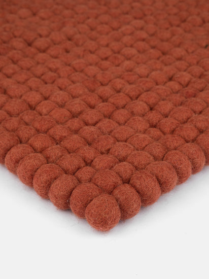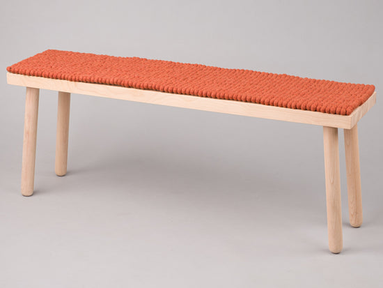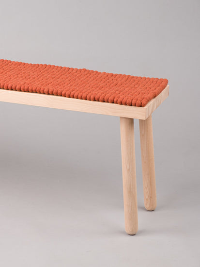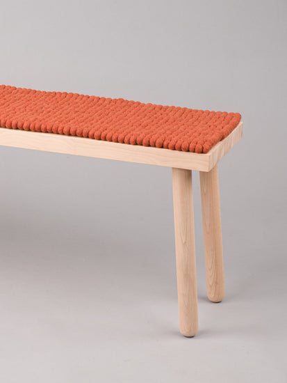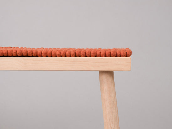For the rust-red Lora bench pad individual felt balls made of pure virgin wool are sewn together by hand. Their timeless design blends perfectly into any interior design and is an excellent match to your favorite bench. myfelt bench pads are water- and dirt-repellent, can be used on both sides and are available in every custom size.