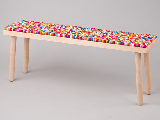 Colourful Felt Ball Bench Pad made from Virgin Wool in your desired size.