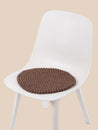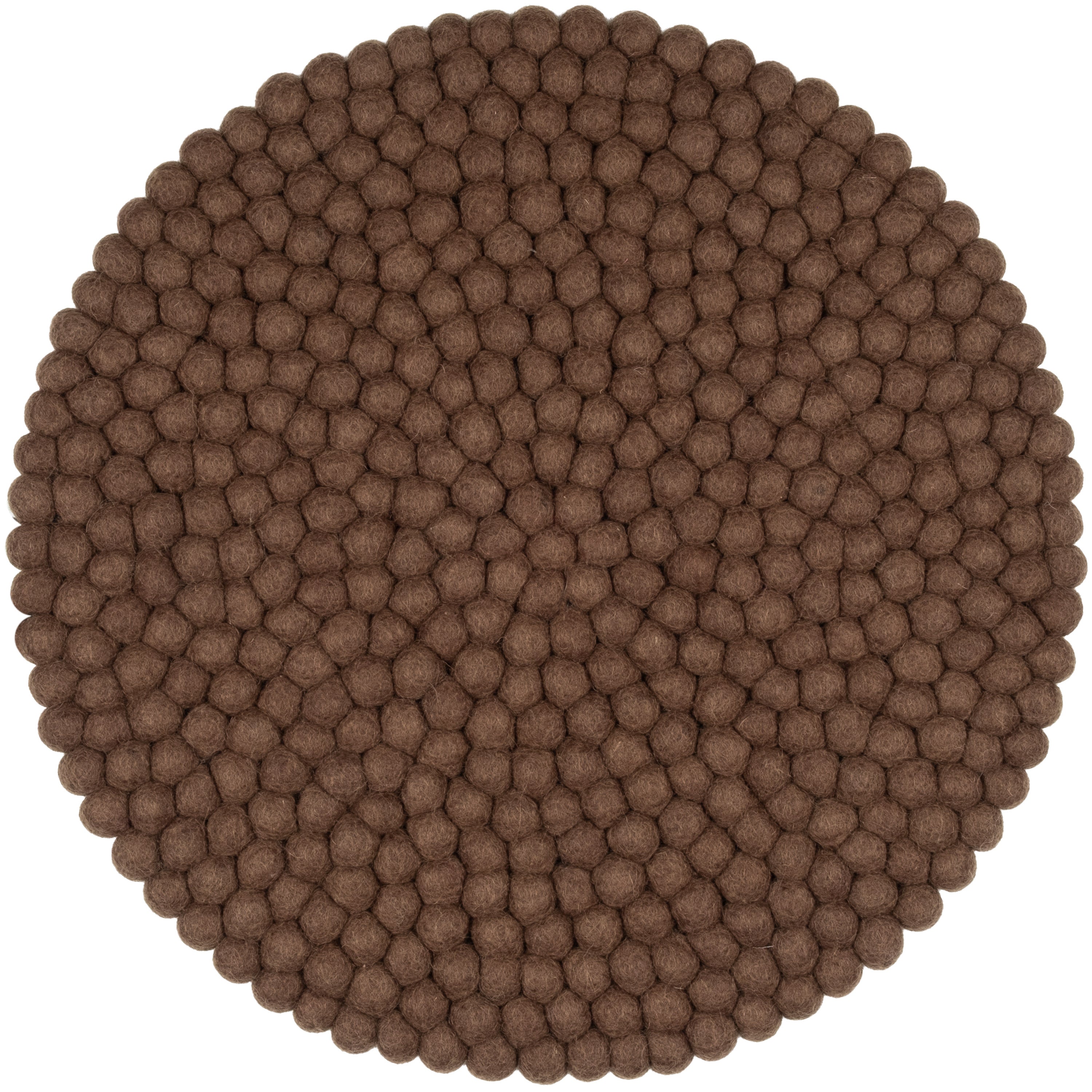 Round, brown seat pad made of pure new wool.