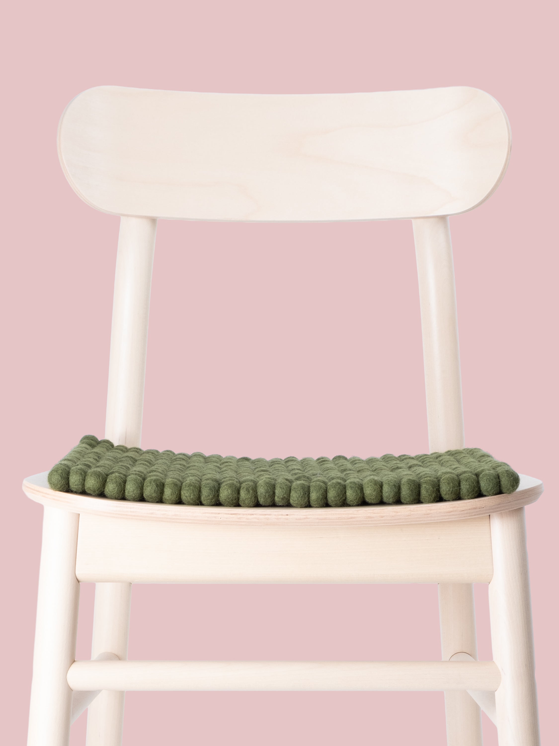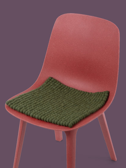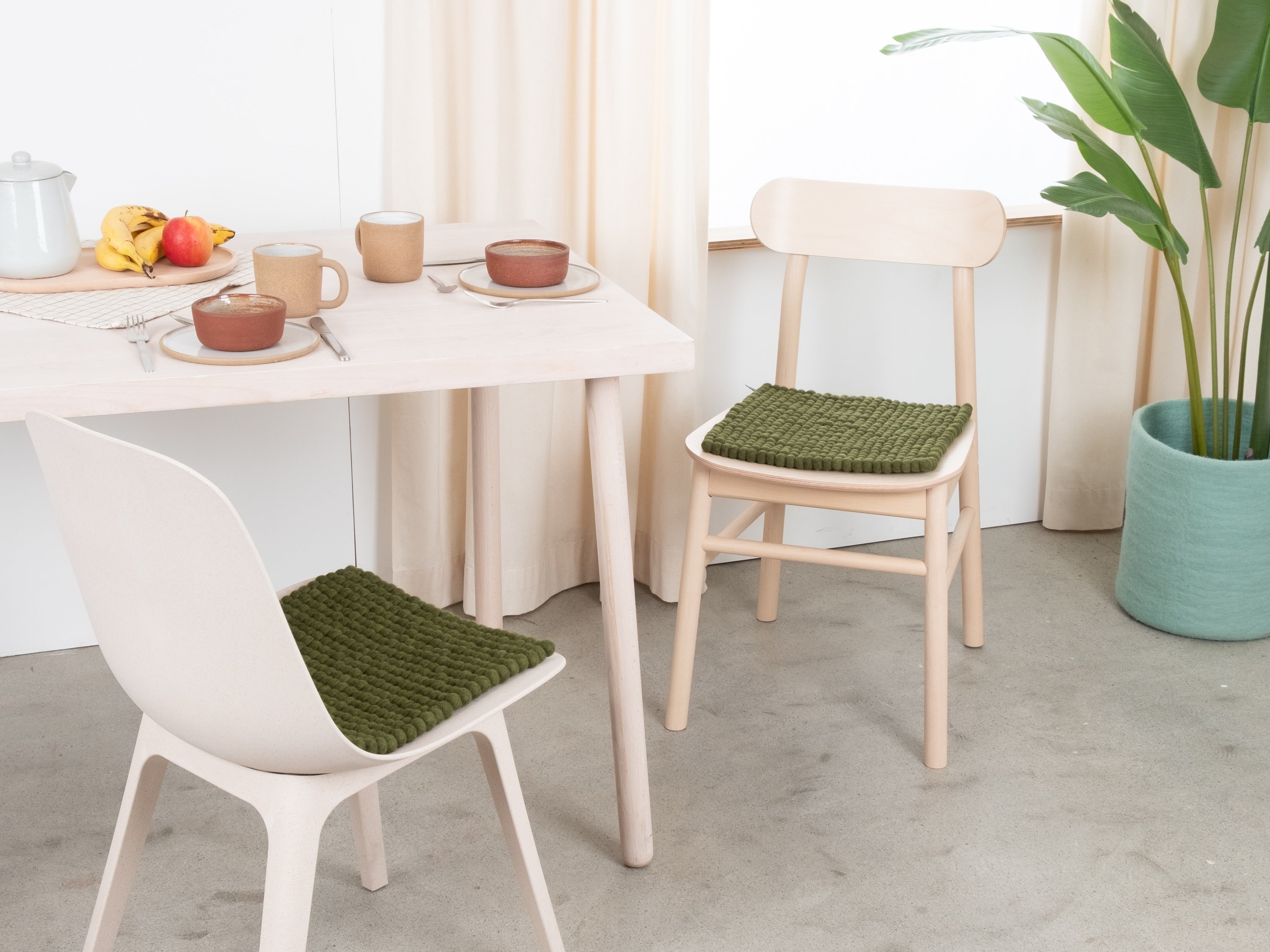 The dark green seat pad Jost brings warmth and softness to your favorite chair. Made from pure new wool, handcrafted in Nepal and produced under fair conditions. myfelt seat pads are water- and dirt-repellent and can be used on both sides.
