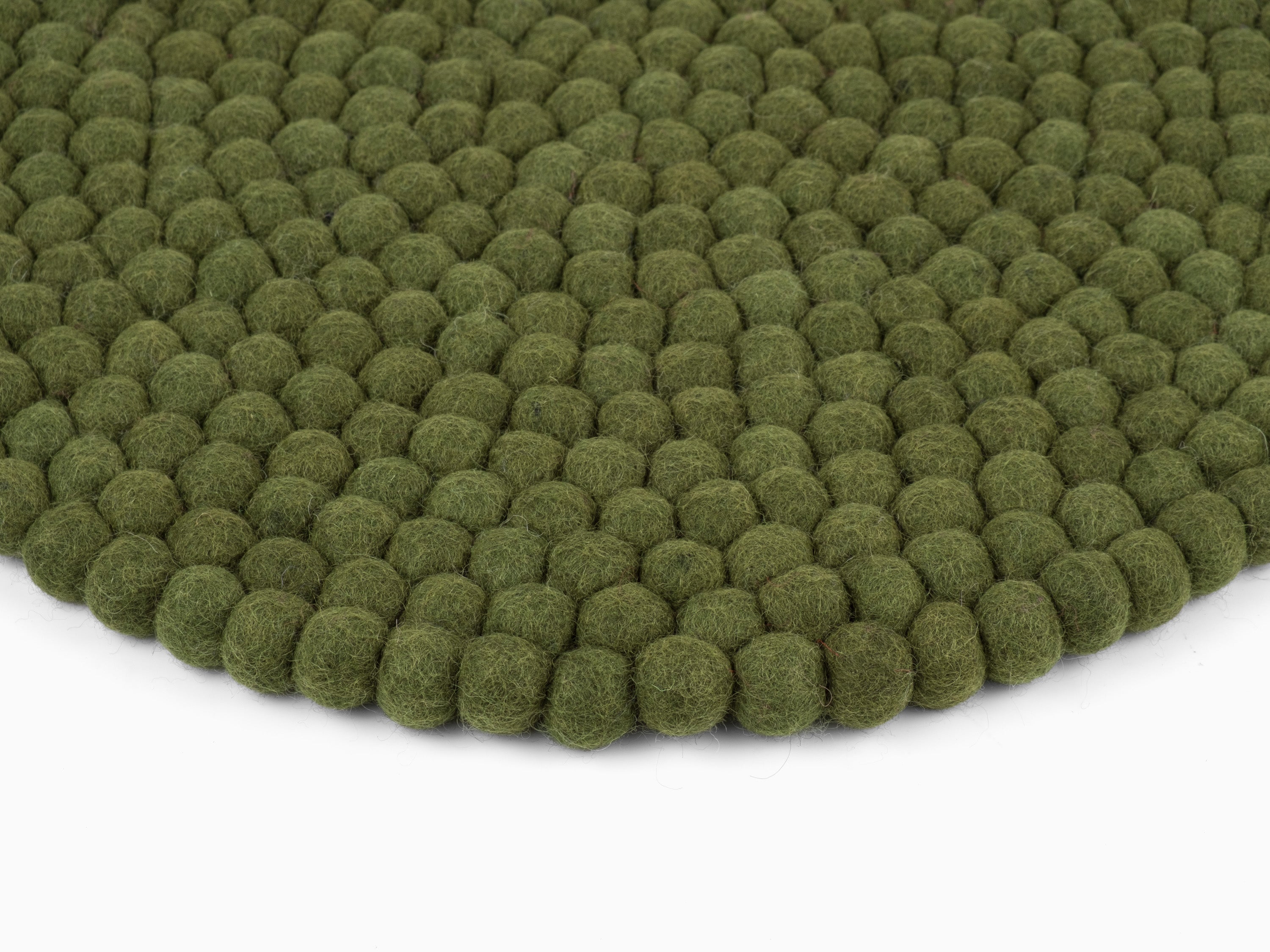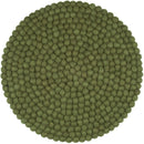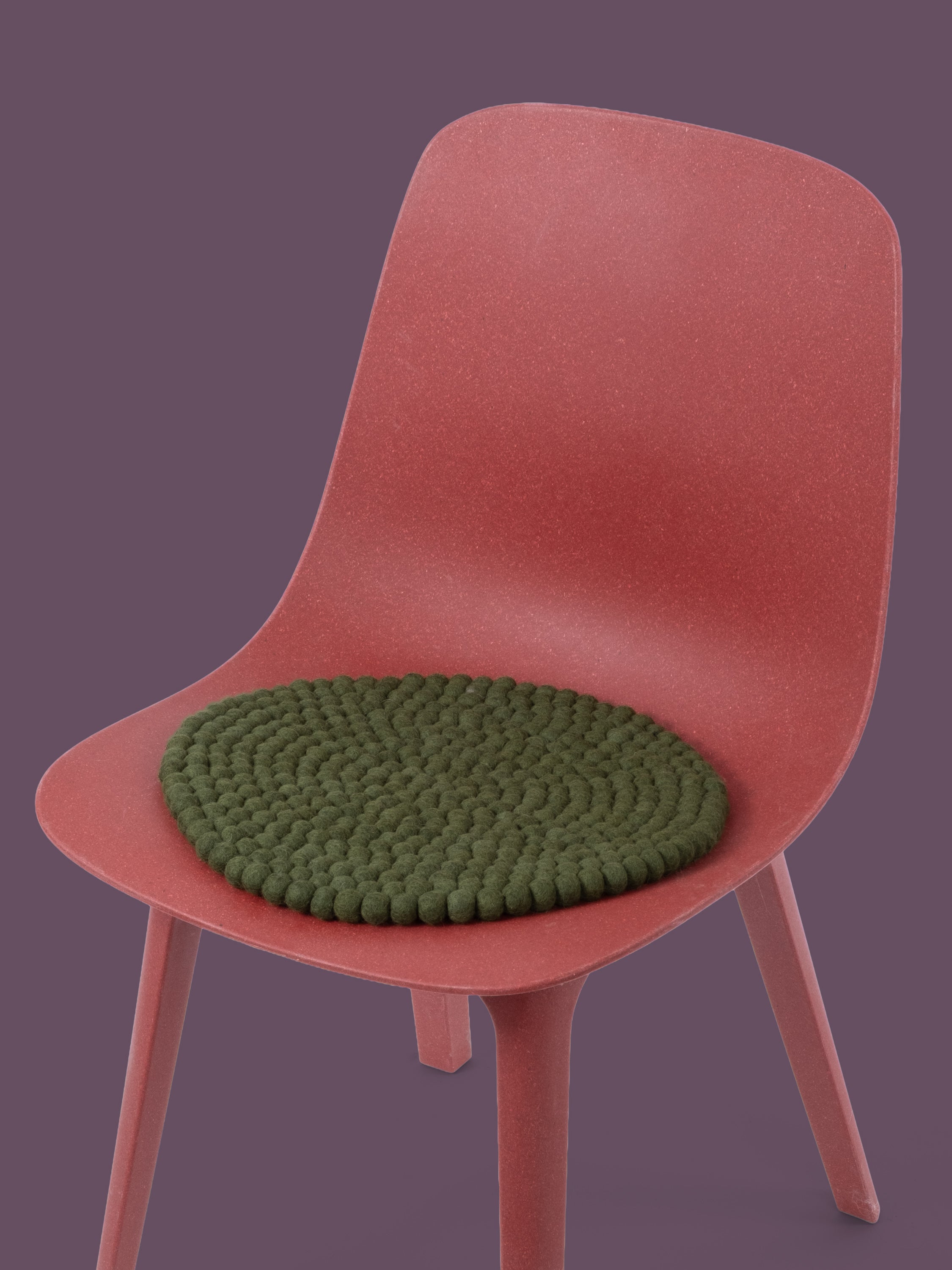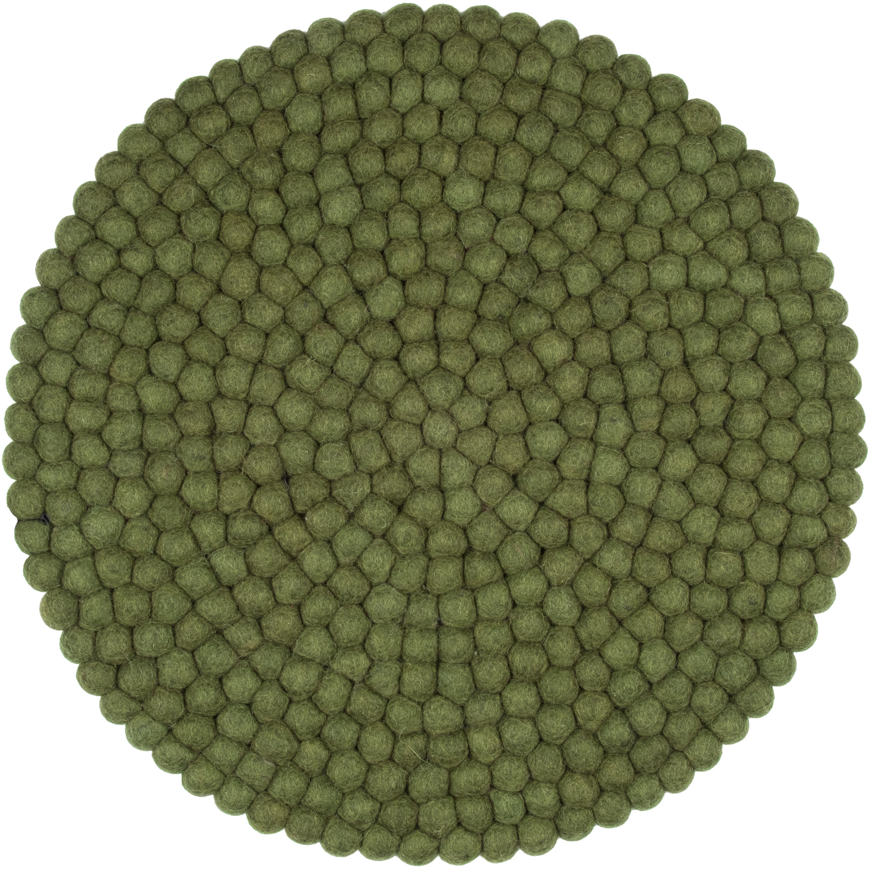 Round, dark green seat pad made of pure new wool.