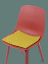 Square, green-yellow seat pad made of pure new wool.