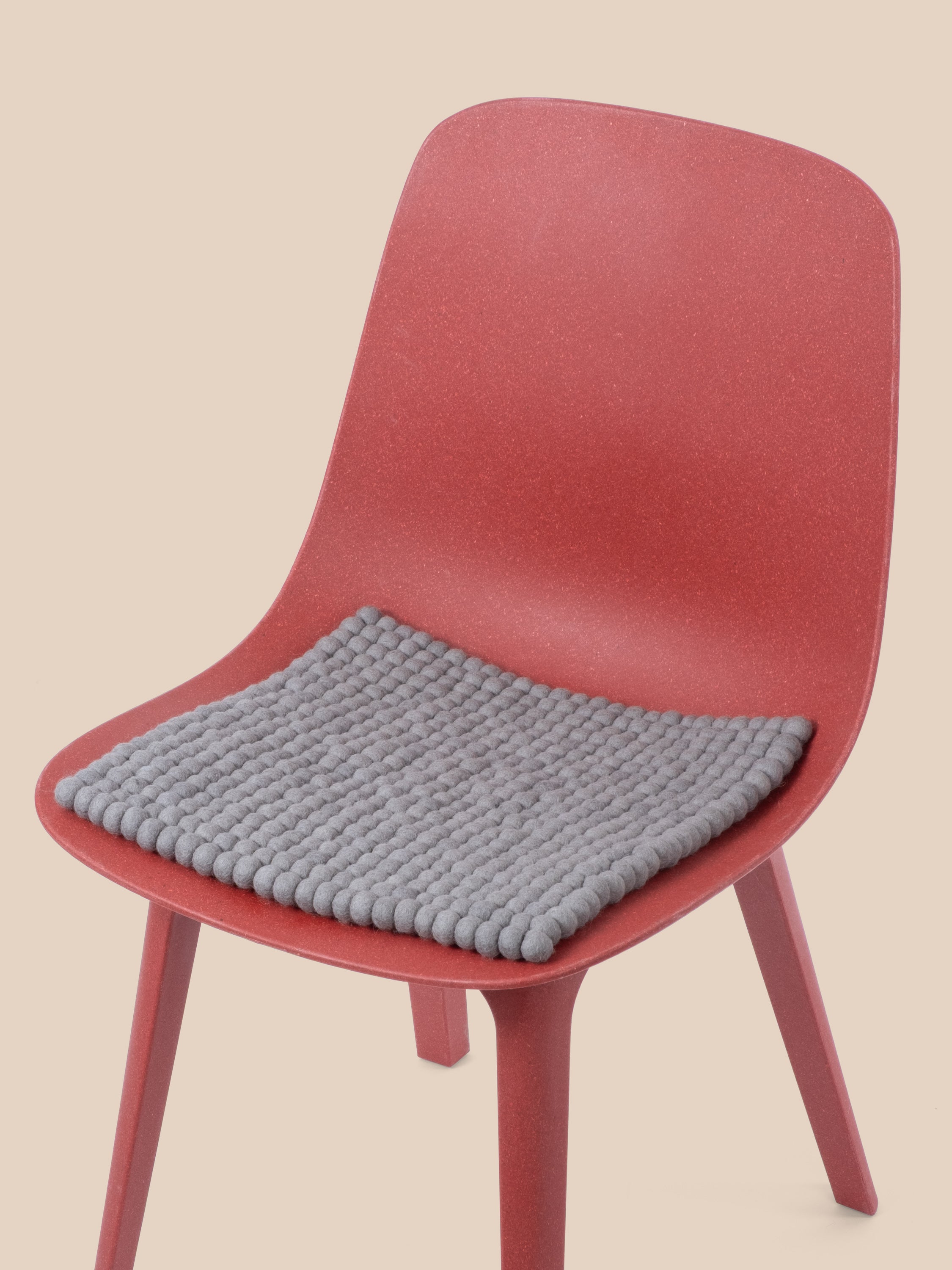 The gray seat pad Kian brings warmth and softness to your favorite chair. Made from pure new wool, handcrafted in Nepal and produced under fair conditions. myfelt seat pads are water- and dirt-repellent and can be used on both sides.