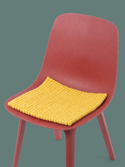 Square, yellow seat pad made of pure new wool.