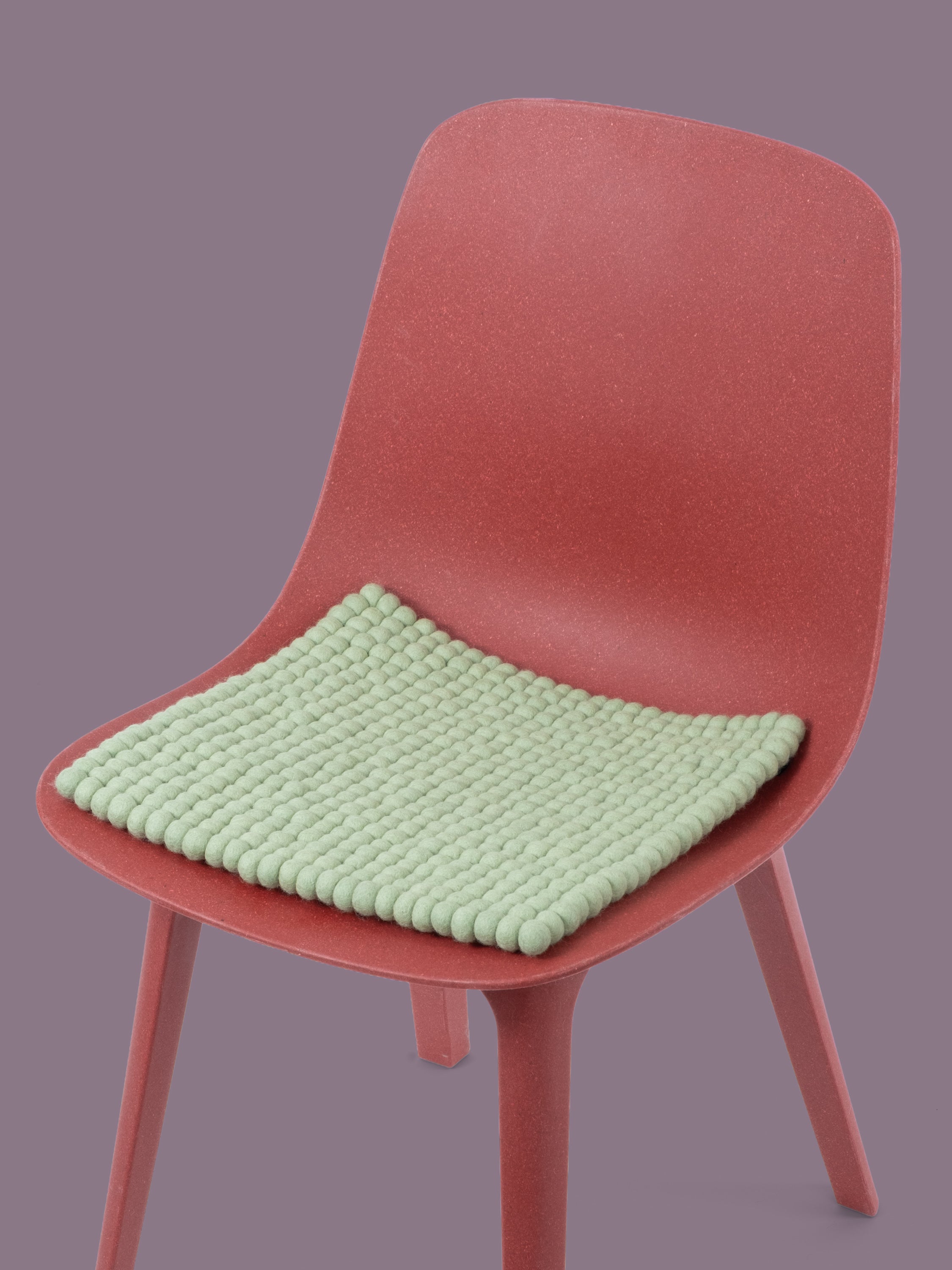 The light green seat pad Lasse brings warmth and softness to your favorite chair. Made from pure new wool, handcrafted in Nepal and produced under fair conditions. myfelt seat pads are water- and dirt-repellent and can be used on both sides.