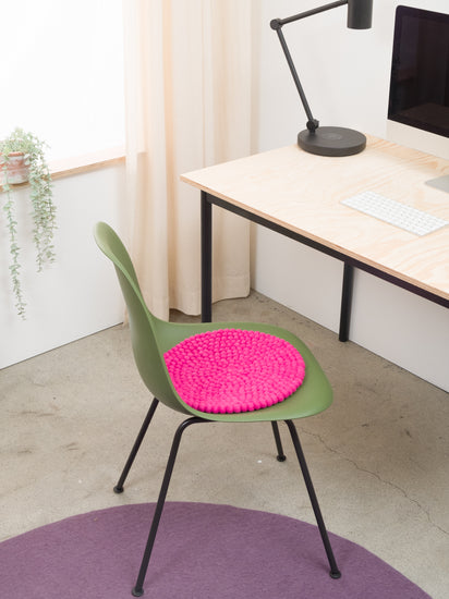 The round Lilli felt ball seat pad in lively pink gives any room a cheerful and inviting touch. Each element of this seat pad is carefully handcrafted from pure virgin wool, making Lilli a cozy yet environmentally conscious choice.