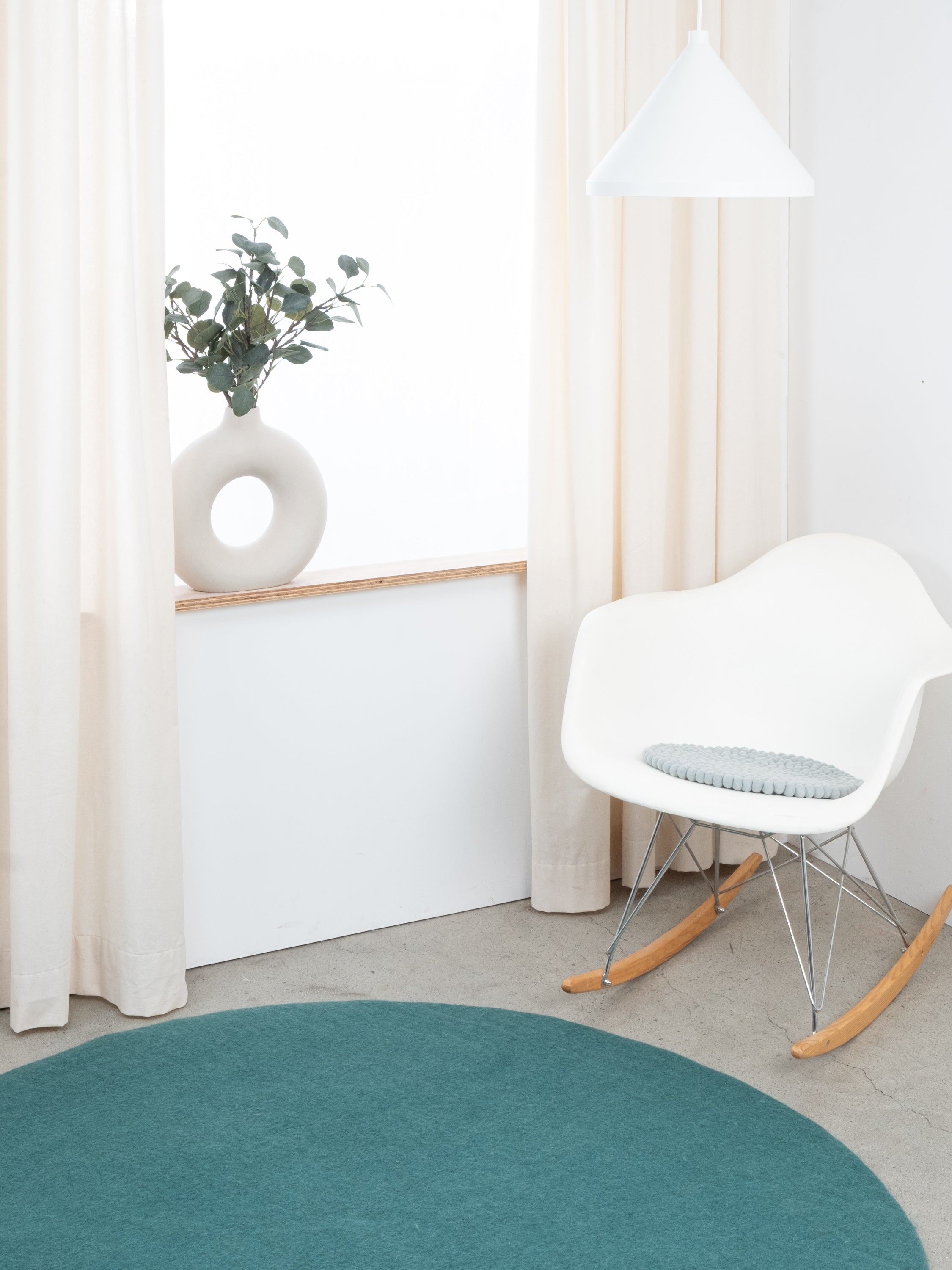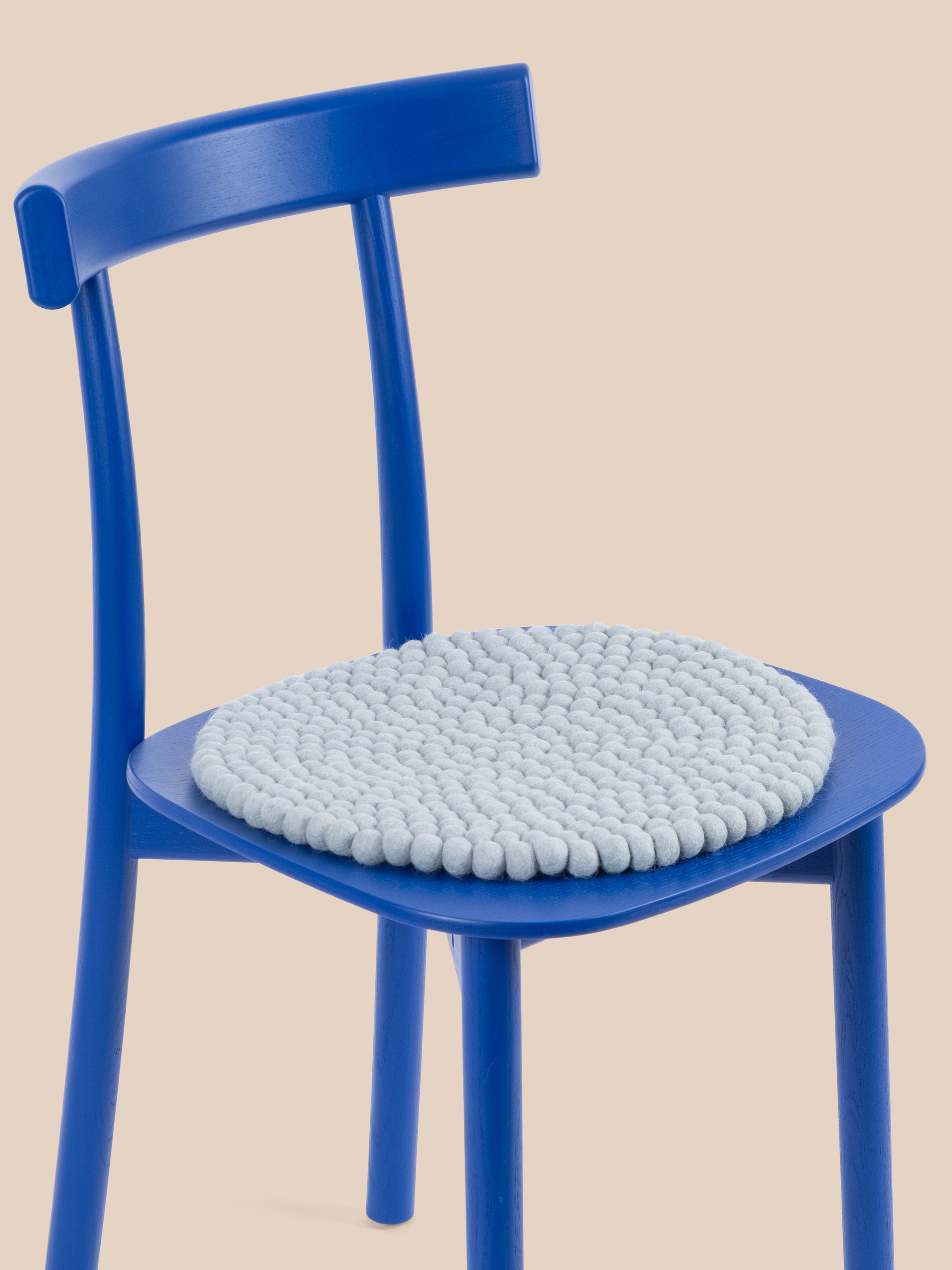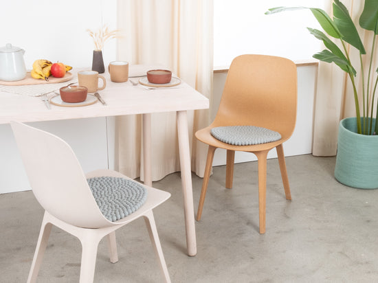 The light blue seat pad Liv brings warmth and softness to your favorite chair. Made from pure new wool, handcrafted in Nepal and produced under fair conditions. myfelt seat pads are water- and dirt-repellent and can be used on both sides.