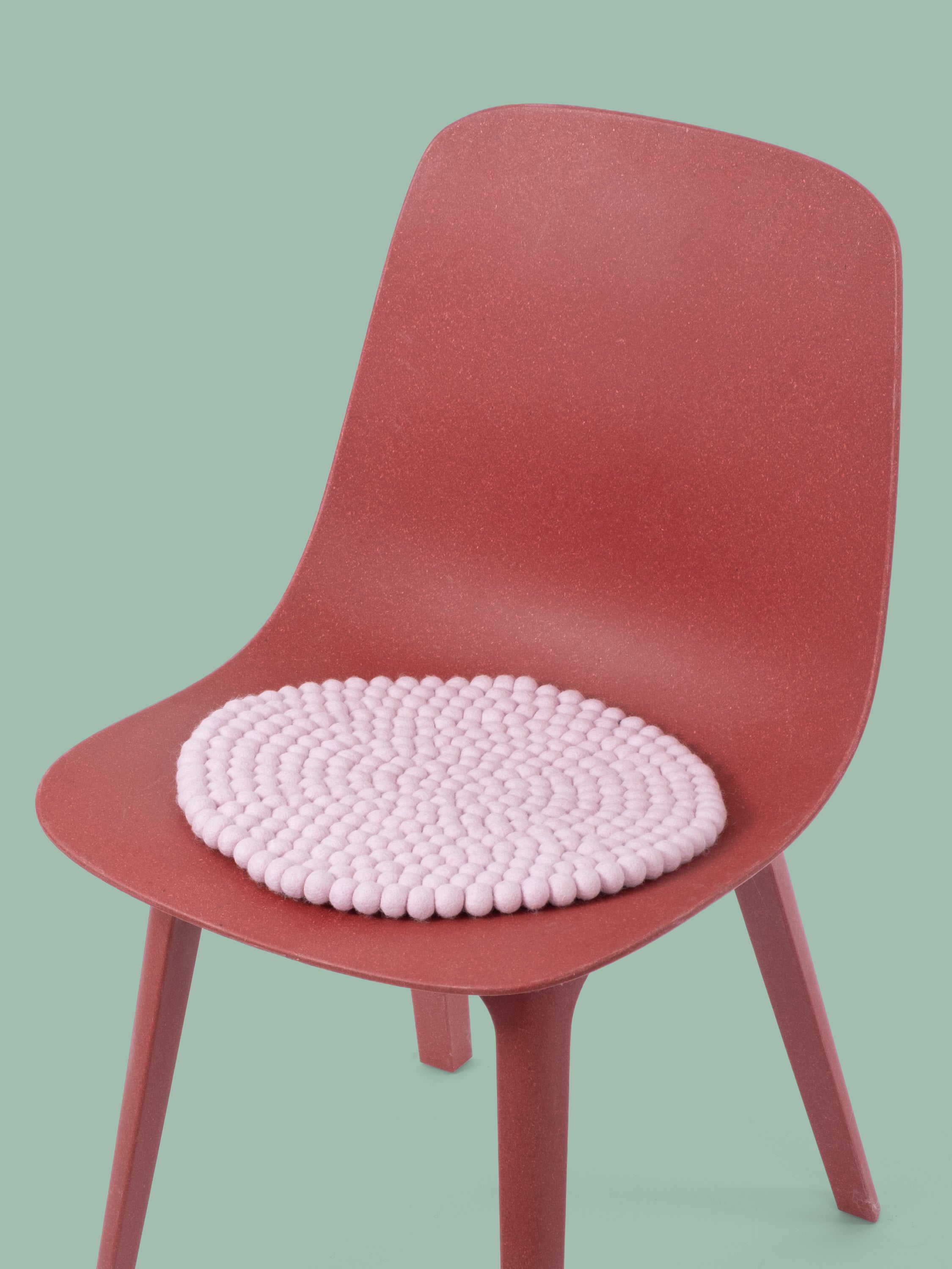The soft pink seat pad Mona brings warmth and softness to your favorite chair. Made from pure new wool, handcrafted in Nepal and produced under fair conditions. myfelt seat pads are water- and dirt-repellent and can be used on both sides.