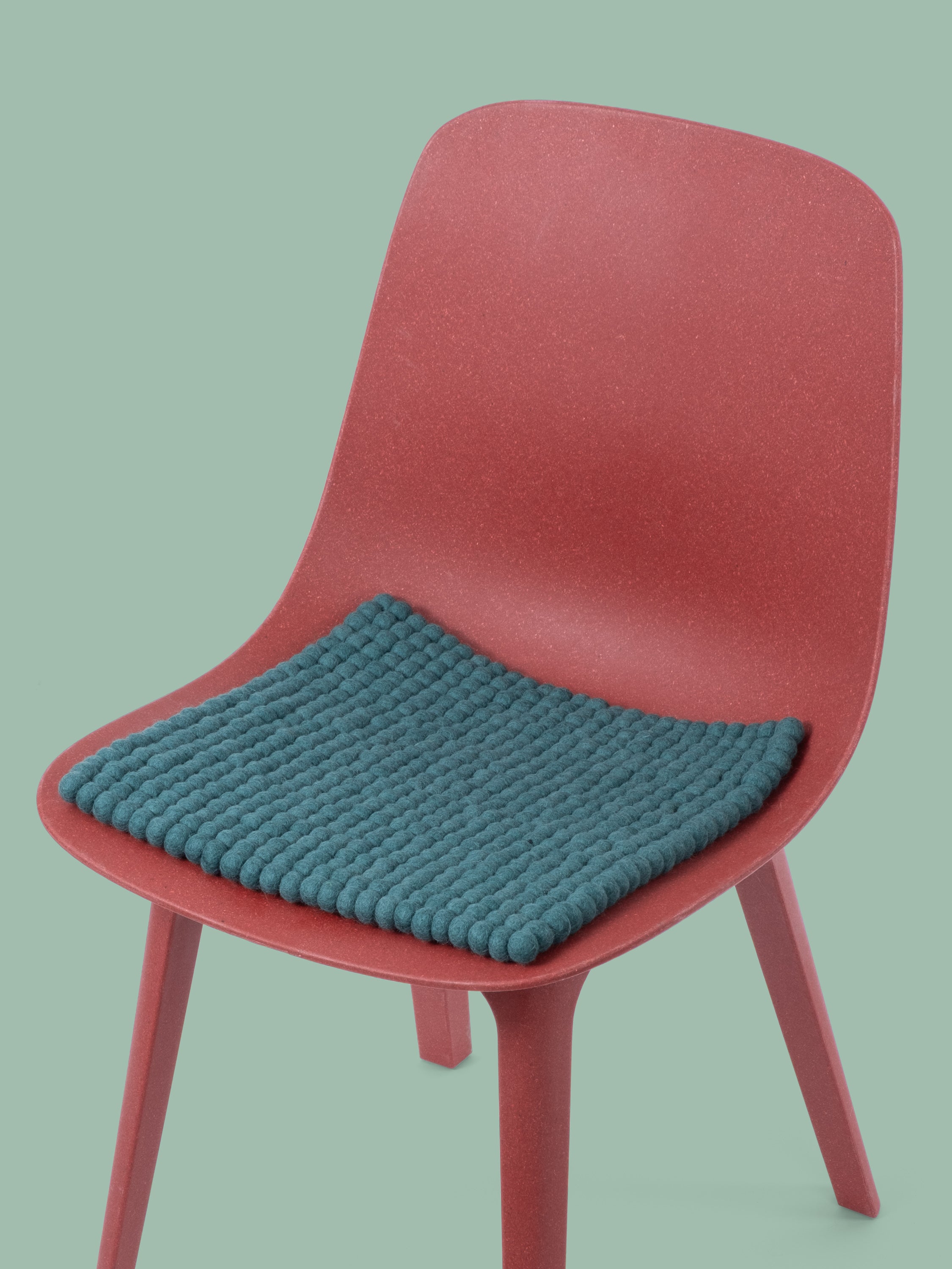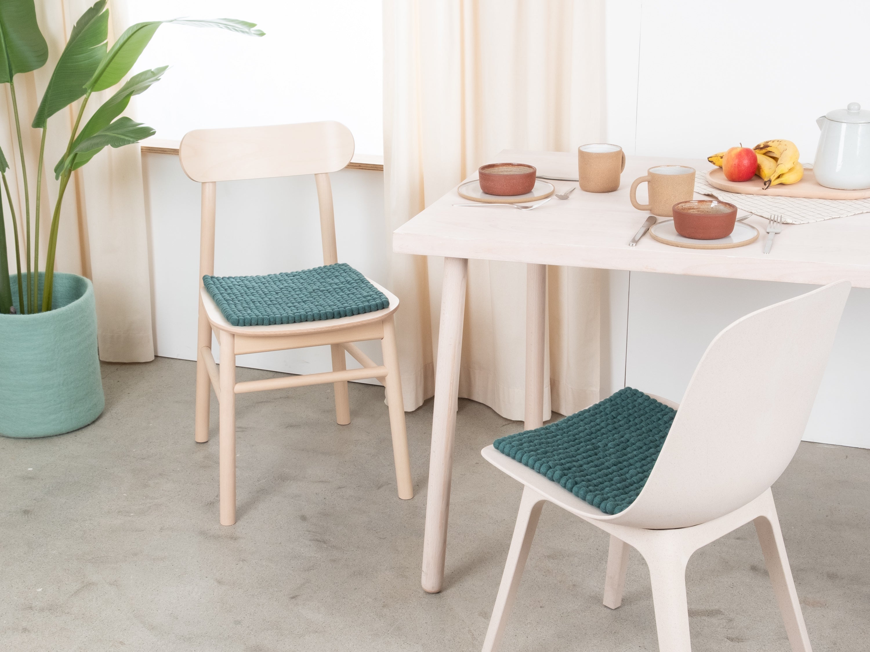 The petrol-colored seat pad Noah brings warmth and softness to your favorite chair. Made from pure new wool, handcrafted in Nepal and produced under fair conditions. myfelt seat pads are water- and dirt-repellent and can be used on both sides.