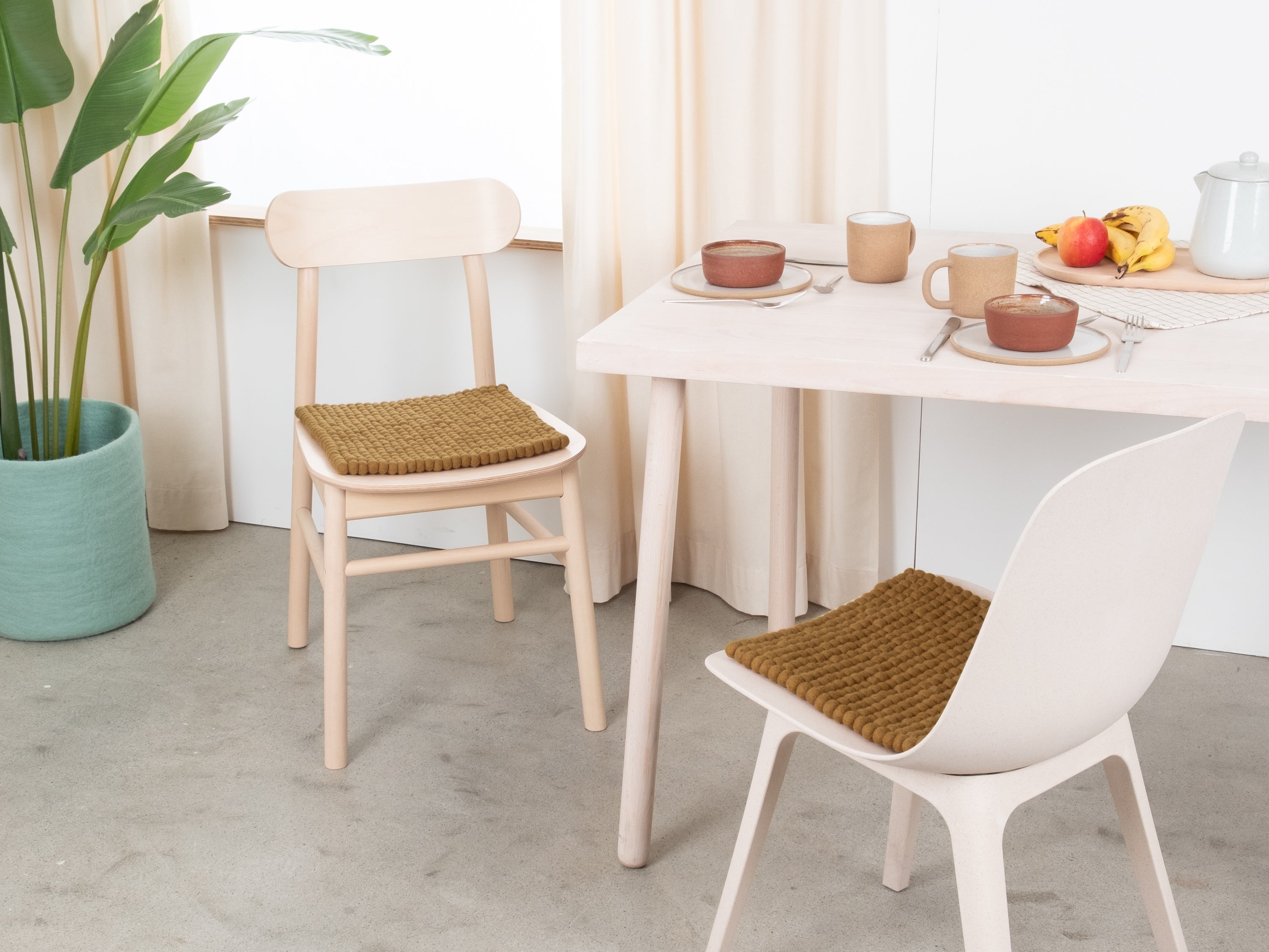 The caramel-colored seat pad Omar brings warmth and softness to your favorite chair. Made from pure new wool, handcrafted in Nepal and produced under fair conditions. myfelt seat pads are water- and dirt-repellent and can be used on both sides.